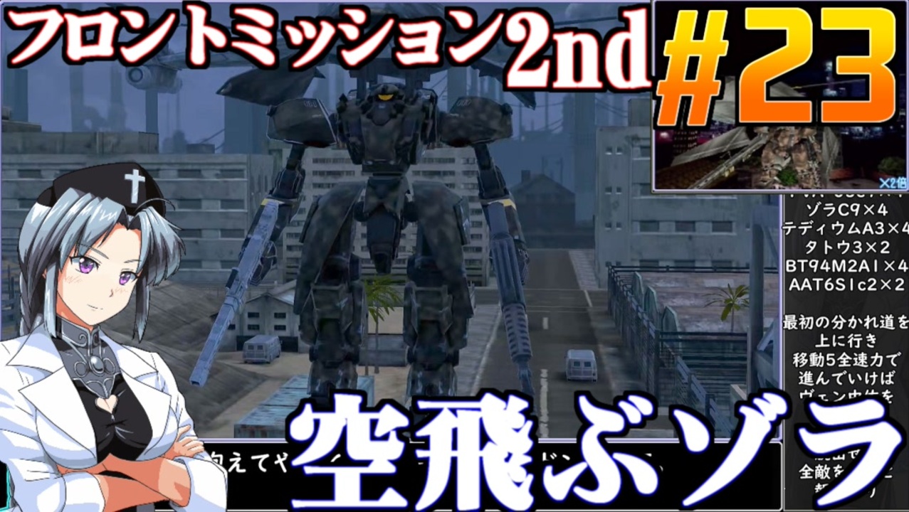 初通販できない辺境の国なので初投稿です。<br>MISSION.18 続・首都ダカ脱出戦<br><br>◆FRONT MISSION 2nd:REMAKE◆<br>1997年スクウェアより発売されたSRPG<br>バングラデシュから国名を改めたアジアの国、アロルデシュを巡る陰謀と<br>二足歩行戦車・ヴァンツァーでの戦いをえがいた作品。<br>2023年10月5日switch版発売<br>本プレイはswitch版の桜乃そら実況動画<br><br>◆ニコニコクリエイターサポート<br><a href="https://creator-support.nicovideo.jp/registration/1203831" target="_blank" rel="noopener nofollow">https://creator-support.nicovideo.jp/registration/1203831</a><br>動画制作の励みになります<br><br>◆Twitter<br><a href="https://twitter.com/ikamono8bit" target="_blank" rel="noopener nofollow">https://twitter.com/ikamono8bit</a><br>◆youtube<br><a href="http://www.youtube.com/c/IkamonoY" target="_blank" rel="noopener nofollow">http://www.youtube.com/c/IkamonoY</a><br><br>シリーズまとめ <a href="https://www.nicovideo.jp/user/1203831/series" target="_blank" rel="noopener nofollow">https://www.nicovideo.jp/user/1203831/series</a><br>作った動画全部 <a href="https://www.nicovideo.jp/mylist/42963985" target="_blank" rel="noopener">mylist/42963985</a><br>作った動画全部2<a href="https://www.nicovideo.jp/mylist/70404393" target="_blank" rel="noopener">mylist/70404393</a><br>FM1シリーズ <a href="https://www.nicovideo.jp/mylist/44840712" target="_blank" rel="noopener">mylist/44840712</a><br>FM2シリーズ <a href="https://www.nicovideo.jp/mylist/49797840" target="_blank" rel="noopener">mylist/49797840</a><br>FM3シリーズ <a href="https://www.nicovideo.jp/mylist/53164228" target="_blank" rel="noopener">mylist/53164228</a><br>FM4シリーズ <a href="https://www.nicovideo.jp/mylist/58678376" target="_blank" rel="noopener">mylist/58678376</a><br>FM5シリーズ <a href="https://www.nicovideo.jp/mylist/62245527" target="_blank" rel="noopener">mylist/62245527</a>