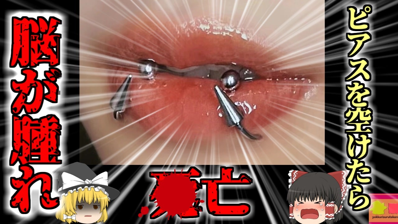 <a href="#" class="seekTime" data-seekTime="00:00" onclick="seekNicoPlayer('#00:00'); return false;">#00:00</a> 冒頭挨拶<br><a href="#" class="seekTime" data-seekTime="00:57" onclick="seekNicoPlayer('#00:57'); return false;">#00:57</a> 視聴上の注意<br><a href="#" class="seekTime" data-seekTime="1:56" onclick="seekNicoPlayer('#1:56'); return false;">#1:56</a> 本編開始<br><a href="#" class="seekTime" data-seekTime="2:40" onclick="seekNicoPlayer('#2:40'); return false;">#2:40</a> 激安店の施術<br><a href="#" class="seekTime" data-seekTime="3:28" onclick="seekNicoPlayer('#3:28'); return false;">#3:28</a> ピアス穴の腫れ<br><a href="#" class="seekTime" data-seekTime="4:06" onclick="seekNicoPlayer('#4:06'); return false;">#4:06</a> 病院にはいかなかった<br><a href="#" class="seekTime" data-seekTime="4:54" onclick="seekNicoPlayer('#4:54'); return false;">#4:54</a> 流行していたデング熱<br><a href="#" class="seekTime" data-seekTime="7:05" onclick="seekNicoPlayer('#7:05'); return false;">#7:05</a> 感染症と敗血症<br><a href="#" class="seekTime" data-seekTime="9:04" onclick="seekNicoPlayer('#9:04'); return false;">#9:04</a> 不衛生な環境での施術<br><br>今回紹介するのは、以前リクエストがありました、感染症に関する事例です。ブラジル連邦共和国某所に暮らす女性「Aさん」はこの日、地域の小さなピアス店に入り、唇にピアス穴をあける施術を受けました。<br>しかしその後彼女の唇は大きく腫れ、中々症状が治まらず、彼女は約二か月間、この唇の痛みと腫れに苦しみ、ついに我慢できなくなり、医療機関を受診しました。<br>ですがその診療所では、精密検査が受けられないため、担当した医師は大学病院に紹介状を書き、そこでMRI検査を受けるように勧め、彼女はそれを受けて市内の大学病院へと移動しました。<br>しかしその途中、彼女は突然意識を失ってしまい、道路に倒れてしまいました。<br>幸いなことに、彼女のことを目撃した通行人によって、救急に通報され、Aさんは救急車で大学病院へと搬送され行きました。<br>そこで検査を行った結果、Aさんは脳の一部に炎症を起こし、それが原因で激しい頭痛をはじめとした様々な症状を発症していたことがわかりました。<br>Aさんはすぐに手術を受け、その後入院、集中治療室にいれられましたが、意識が戻らないまま、数日後に亡くなりました。<br><br><br />※この動画は過去の事件を知り、現在でも同じことが発生する危険性を再認識、関与しないように促すための動画であり、視聴者を扇動、動揺を誘うためのコンテンツではありません。<br><br>ご要望にお応えして、メンバーシップの開設を行いました。<br>下記URLからも登録可能ですので、ご興味がある方は是非ご参加ください。<br><a href="https://www.youtube.com/channel/UCcT5a1J7XJW7CLYI2RKl4pw/join" target="_blank" rel="noopener nofollow">https://www.youtube.com/channel/UCcT5a1J7XJW7CLYI2RKl4pw/join</a><br><br><br>Twitter<br>→<a href="https://twitter.com/yukkurisurutoko" target="_blank" rel="noopener nofollow">https://twitter.com/yukkurisurutoko</a><br><br>取り急ぎ、簡易的にですがマイリストを作りました。<br>【ゆっくり解説】事故・事件関係紹介リスト <br><a href="https://www.nicovideo.jp/mylist/71034319" target="_blank" rel="noopener nofollow">https://www.nicovideo.jp/mylist/71034319</a><br>【ゆっくり解説】放射線系事故<br><a href="https://www.nicovideo.jp/mylist/71034368" target="_blank" rel="noopener nofollow">https://www.nicovideo.jp/mylist/71034368</a><br>【ゆっくり解説】鉄道系事故・事件関連<br><a href="https://www.nicovideo.jp/mylist/71034379" target="_blank" rel="noopener nofollow">https://www.nicovideo.jp/mylist/71034379</a>