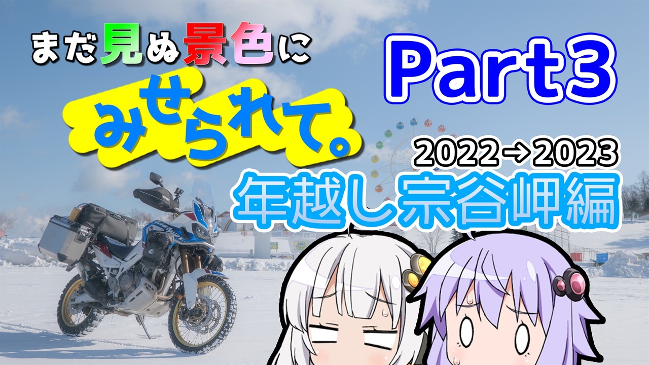 お待たせしてすみません、年越し宗谷岬編のPart3になります。<br>無事に宗谷岬で年を越した一行。<br>最北端の地を後にし向かった先で待ち構えていたものとは…?<br><br><br>りょくちゃさんの動画はこちら → <a href="https://www.nicovideo.jp/mylist/62707515" target="_blank" rel="noopener">mylist/62707515</a><br>youtube版 → <a href="https://youtu.be/wt54x7imYss" target="_blank" rel="noopener nofollow">https://youtu.be/wt54x7imYss</a><br>twitter → @1_83m<br><br><br>車種:Africa Twin Adventure Sports('19)<br>動画用カメラ:GoPro HERO7 Black / DJI Osmo Action 3<br>静止画用:Panasonic DC-S5 / Google Pixel5<br>動画編集ソフト:AviUtl / Adobe Lightroom / Adobe Photoshop<br><br>////////////////////////////////////////////////////////////////////////////////////////////////////<br>【ツーリング動画シリーズ】<br>年越し宗谷岬リベンジ編 → <a href="https://www.nicovideo.jp/series/416233" target="_blank" rel="noopener">series/416233</a><br>2022GW九州編 → <a href="https://www.nicovideo.jp/series/371704" target="_blank" rel="noopener">series/371704</a><br>離島ツーリング編 → <a href="https://www.nicovideo.jp/series/126282" target="_blank" rel="noopener">series/126282</a><br>2020北海道ツーリング編 → <a href="https://www.nicovideo.jp/series/224272" target="_blank" rel="noopener">series/224272</a><br>厳冬ツーリング(冬宗谷)編 → <a href="https://www.nicovideo.jp/series/126281" target="_blank" rel="noopener">series/126281</a><br>2019GW北日本編 → <a href="https://www.nicovideo.jp/series/126280" target="_blank" rel="noopener">series/126280</a><br>2018北海道編 → <a href="https://www.nicovideo.jp/series/126277" target="_blank" rel="noopener">series/126277</a><br>2018GW東北編 → <a href="https://www.nicovideo.jp/series/126276" target="_blank" rel="noopener">series/126276</a><br>単発動画・プチ動画たち → <a href="https://www.nicovideo.jp/series/126278" target="_blank" rel="noopener">series/126278</a><br><br>【その他のシリーズ】<br>登山動画シリーズ → <a href="https://www.nicovideo.jp/series/285046" target="_blank" rel="noopener">series/285046</a><br>料理動画シリーズ → <a href="https://www.nicovideo.jp/series/285870" target="_blank" rel="noopener">series/285870</a><br><br><br>