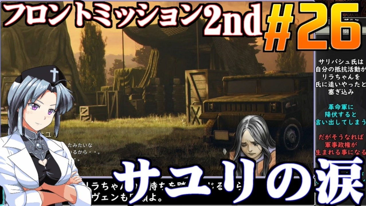 初なんかRPGツクールとかにありそうなバグなので初投稿です。<br>2102年6月21日午後4時:アロルデシュ国会議事堂<br><br>◆FRONT MISSION 2nd:REMAKE◆<br>1997年スクウェアより発売されたSRPG<br>バングラデシュから国名を改めたアジアの国、アロルデシュを巡る陰謀と<br>二足歩行戦車・ヴァンツァーでの戦いをえがいた作品。<br>2023年10月5日switch版発売<br>本プレイはswitch版の桜乃そら実況動画<br><br>◆ニコニコクリエイターサポート<br><a href="https://creator-support.nicovideo.jp/registration/1203831" target="_blank" rel="noopener nofollow">https://creator-support.nicovideo.jp/registration/1203831</a><br>動画制作の励みになります<br><br>◆Twitter<br><a href="https://twitter.com/ikamono8bit" target="_blank" rel="noopener nofollow">https://twitter.com/ikamono8bit</a><br>◆youtube<br><a href="http://www.youtube.com/c/IkamonoY" target="_blank" rel="noopener nofollow">http://www.youtube.com/c/IkamonoY</a><br><br>シリーズまとめ <a href="https://www.nicovideo.jp/user/1203831/series" target="_blank" rel="noopener nofollow">https://www.nicovideo.jp/user/1203831/series</a><br>作った動画全部 <a href="https://www.nicovideo.jp/mylist/42963985" target="_blank" rel="noopener">mylist/42963985</a><br>作った動画全部2<a href="https://www.nicovideo.jp/mylist/70404393" target="_blank" rel="noopener">mylist/70404393</a><br>FM1シリーズ <a href="https://www.nicovideo.jp/mylist/44840712" target="_blank" rel="noopener">mylist/44840712</a><br>FM2シリーズ <a href="https://www.nicovideo.jp/mylist/49797840" target="_blank" rel="noopener">mylist/49797840</a><br>FM3シリーズ <a href="https://www.nicovideo.jp/mylist/53164228" target="_blank" rel="noopener">mylist/53164228</a><br>FM4シリーズ <a href="https://www.nicovideo.jp/mylist/58678376" target="_blank" rel="noopener">mylist/58678376</a><br>FM5シリーズ <a href="https://www.nicovideo.jp/mylist/62245527" target="_blank" rel="noopener">mylist/62245527</a>