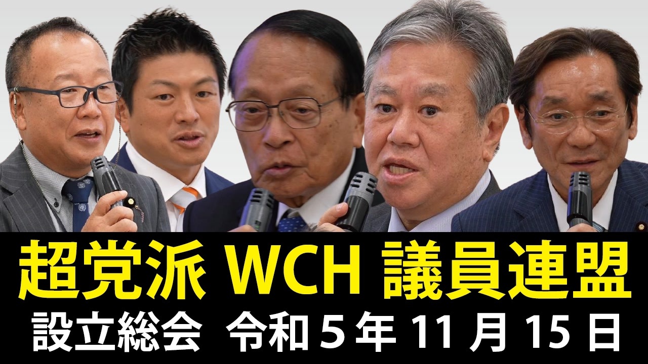 令和5年11月15日 超党派WCH議員連盟 設立総会<br>この動画は主催者の許可を得た上で投稿者が現地で撮影し、編集し公開をしています。<br><br>※ニコニコ動画の容量制限のため、本来の映像よりも画質が落ちています。<br>画質版はこちら➡<a href="https://nicochannel.jp/fujie/video/sm9LWEjUAts6ccGVqWuLyqQ6" target="_blank" rel="noopener nofollow">https://nicochannel.jp/fujie/video/sm9LWEjUAts6ccGVqWuLyqQ6</a><br><br>―――――――――――――――――――――――――――――――<br><br>❑4月10日発売予定「世界を欺いた〇〇〇〇〇〇〇」(宝島社新書)<br><a href="https://amzn.to/3ymDfgr" target="_blank" rel="noopener nofollow">https://amzn.to/3ymDfgr</a><br>鳥集徹(著) 闇のダディ(著) 藤江成光(著)←私<br><br>―――――――――――――――――――――――――――――――<br><br>❑新しい動画サイト「真の日本人増加計画」始めました!<br><a href="https://nicochannel.jp/fujie/" target="_blank" rel="noopener nofollow">https://nicochannel.jp/fujie/</a><br>(ニコニコチャンネル+)<br><br><br>❏藤江の活動を支援していただける方向け<br>【藤江支援口座】のご案内<br>住信SBIネット銀行 ミカン支店(店番号103)<br>口座番号 3107694<br>口座名義 フジエ マサミツ<br><br>――――――――――――――――――――――――――――――<br><br>日本の人口増加を目指す男、藤江です!【メインチャンネル】<br><a href="https://www.youtube.com/c/JINKOUZOUKA/" target="_blank" rel="noopener nofollow">https://www.youtube.com/c/JINKOUZOUKA/</a><br><br>地域と日本の存続のためニ!【藤江2ndチャンネル】<br><a href="https://www.youtube.com/channel/UCfBh4rv5UT7D-qR6KsoZrsA" target="_blank" rel="noopener nofollow">https://www.youtube.com/channel/UCfBh4rv5UT7D-qR6KsoZrsA</a><br><br>今こそ!三千年の底力【藤江3rdチャンネル】<br><a href="https://www.youtube.com/channel/UC5Yrsm8-X8nZj4uKgvE7CBw" target="_blank" rel="noopener nofollow">https://www.youtube.com/channel/UC5Yrsm8-X8nZj4uKgvE7CBw</a><br><br>四海兄弟【藤江4thチャンネル】<br><a href="https://www.youtube.com/channel/UCiyJNO57quj80Ysy7nOABvA" target="_blank" rel="noopener nofollow">https://www.youtube.com/channel/UCiyJNO57quj80Ysy7nOABvA</a><br><br>五穀豊穣【藤江5thチャンネル】<br><a href="https://www.youtube.com/channel/UCptMJCoKYghfew5tDzoEqHQ" target="_blank" rel="noopener nofollow">https://www.youtube.com/channel/UCptMJCoKYghfew5tDzoEqHQ</a><br><br>六根清浄【藤江6thチャンネル】<br><a href="https://www.youtube.com/@FUJIE6th" target="_blank" rel="noopener nofollow">https://www.youtube.com/@FUJIE6th</a><br><br>藤江のTwitter<br><a href="https://twitter.com/JINKOUZOUKA_jp" target="_blank" rel="noopener nofollow">https://twitter.com/JINKOUZOUKA_jp</a><br><br>藤江のニコニコ動画<br><a href="https://www.nicovideo.jp/user/5457748" target="_blank" rel="noopener nofollow">https://www.nicovideo.jp/user/5457748</a>