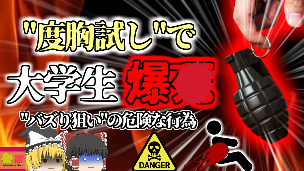 <a href="#" class="seekTime" data-seekTime="00:00" onclick="seekNicoPlayer('#00:00'); return false;">#00:00</a> 冒頭挨拶<br><a href="#" class="seekTime" data-seekTime="1:09" onclick="seekNicoPlayer('#1:09'); return false;">#1:09</a> 視聴上の注意<br><a href="#" class="seekTime" data-seekTime="2:17" onclick="seekNicoPlayer('#2:17'); return false;">#2:17</a> 本編開始<br><a href="#" class="seekTime" data-seekTime="2:53" onclick="seekNicoPlayer('#2:53'); return false;">#2:53</a> チャットしていた2人<br><a href="#" class="seekTime" data-seekTime="4:11" onclick="seekNicoPlayer('#4:11'); return false;">#4:11</a> Aさんから送られた写真と投稿<br><a href="#" class="seekTime" data-seekTime="5:32" onclick="seekNicoPlayer('#5:32'); return false;">#5:32</a> 手榴弾で遊ぶ動画<br><a href="#" class="seekTime" data-seekTime="6:09" onclick="seekNicoPlayer('#6:09'); return false;">#6:09</a> 発見されたAさんは…<br><a href="#" class="seekTime" data-seekTime="7:09" onclick="seekNicoPlayer('#7:09'); return false;">#7:09</a> 手榴弾とは<br><a href="#" class="seekTime" data-seekTime="9:10" onclick="seekNicoPlayer('#9:10'); return false;">#9:10</a> 爆発する仕組み<br><a href="#" class="seekTime" data-seekTime="9:51" onclick="seekNicoPlayer('#9:51'); return false;">#9:51</a> 彼のミスと入手経路<br><br>今回紹介するのは、以前リクエストがありました、とある爆発事故についてです。<br>ロシア連邦南西部に暮らす男性「Bさん」の元にはこの日、仲のいい同級生の男性「Aさん」から、携帯電話のチャットアプリのメッセージが届いていました。<br>彼らは普段から、他愛もない会話をこのアプリで楽しんでいましたが、この日Aさんの送ってきたメッセージは、いつもと少し違ったものでした。<br><br>「今から面白いものを見せてやる」<br>「俺のアカウントを見ておきな」<br><br>このメッセージには画像が添付され、その画像には、手榴弾とみられる金属の塊を握る手と、ピンのようなものが映し出されていました。<br><br>Bさんはこのメッセージと画像を見てすぐ、これがどういう意味なのかを察すると、すぐにAさんに電話をかけましたが、彼からの応答はありませんでした。<br>続けてAさんのSNSアカウントをチェックすると、そこには先ほどの画像に映っていたものと同じ内容の動画ファイルが投稿され、それには「度胸試し」という言葉が添えられ、動画の中の彼は、手榴弾の安全ピンを何度も抜き差ししていたそうです。<br>Bさんはこの動画を見たあと、連絡のつかなくなったAさんを不審に思い、警察に通報。<br>地元警察はBさんから事情を聴き捜索を開始。<br>すると地域の森の近くの道路に駐車していた、一台の乗用車を発見。<br>乗用車のガラスは吹き飛び、運転席には腹部や腕を損傷した状態の、Aさんの姿があり・・・<br><br><br />※この動画は過去の事件を知り、現在でも同じことが発生する危険性を再認識、関与しないように促すための動画であり、視聴者を扇動、動揺を誘うためのコンテンツではありません。<br><br>ご要望にお応えして、メンバーシップの開設を行いました。<br>下記URLからも登録可能ですので、ご興味がある方は是非ご参加ください。<br><a href="https://www.youtube.com/channel/UCcT5a1J7XJW7CLYI2RKl4pw/join" target="_blank" rel="noopener nofollow">https://www.youtube.com/channel/UCcT5a1J7XJW7CLYI2RKl4pw/join</a><br><br><br>Twitter<br>→<a href="https://twitter.com/yukkurisurutoko" target="_blank" rel="noopener nofollow">https://twitter.com/yukkurisurutoko</a><br><br>取り急ぎ、簡易的にですがマイリストを作りました。<br>【ゆっくり解説】事故・事件関係紹介リスト <br><a href="https://www.nicovideo.jp/mylist/71034319" target="_blank" rel="noopener nofollow">https://www.nicovideo.jp/mylist/71034319</a><br>【ゆっくり解説】放射線系事故<br><a href="https://www.nicovideo.jp/mylist/71034368" target="_blank" rel="noopener nofollow">https://www.nicovideo.jp/mylist/71034368</a><br>【ゆっくり解説】鉄道系事故・事件関連<br><a href="https://www.nicovideo.jp/mylist/71034379" target="_blank" rel="noopener nofollow">https://www.nicovideo.jp/mylist/71034379</a>