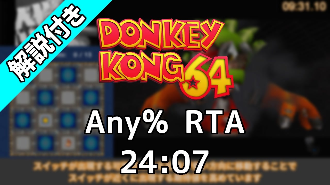 2023/10/31 Twitchにて計測<br><br>環境:北米版Wii U VC<br>コントローラ:クラシックコントローラPro<br><br><br>ドンキーコング64 Any% RTAにて目標の24:0xが出たので解説動画を作りました。<br><br>拙い解説ですがご容赦ください。<br><br>投稿動画 【<a href="https://www.nicovideo.jp/mylist/62779620" target="_blank" rel="noopener">mylist/62779620</a>】<br><br>YouTube【<a href="https://www.youtube.com/watch?v=G7_v7J5HasQ】" target="_blank" rel="noopener nofollow">https://www.youtube.com/watch?v=G7_v7J5HasQ】</a><br><br>当アカウントの投稿動画の転載を禁じます。