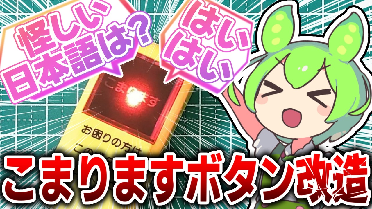 激安の人の<s>パクr</s>… リスペクト動画です。<br>個人的趣味100%全開の(株とは一切無関係な)動画です。<br>ダイソー(DAISO)のこまりますボタン(困りますボタン)を改造して<br>某所のめたんちゃんのセリフ、『はいはい』『怪しい日本語は?』『やっていきましょう』を喋らせました。<br><br>■今回の動画で使用したもの<br>どちらも同じです。<br>音声IC (Alibabaの方)<br><a href="https://www.alibaba.com/product-detail/Serial-voice-chip-OTP-music-doorbell_1600624333902.html" target="_blank" rel="noopener nofollow">https://www.alibaba.com/product-detail/Serial-voice-chip-OTP-music-doorbell_1600624333902.html</a><br>音声IC (1688の方)<br><a href="https://detail.1688.com/offer/671796199401.html" target="_blank" rel="noopener nofollow">https://detail.1688.com/offer/671796199401.html</a><br>こまりますボタン<br><a href="https://jp.daisonet.com/products/4550480127101" target="_blank" rel="noopener nofollow">https://jp.daisonet.com/products/4550480127101</a><br><br>■Youtubeはコチラ<br><a href="https://youtu.be/av_VS7-Keks" target="_blank" rel="noopener nofollow">https://youtu.be/av_VS7-Keks</a><br><br>■立ち絵<br>ずんだもん:坂本アヒル 様<br><a href="https://seiga.nicovideo.jp/seiga/im10788496" target="_blank" rel="noopener nofollow">https://seiga.nicovideo.jp/seiga/im10788496</a><br>四国めたん:坂本アヒル 様<br><a href="https://seiga.nicovideo.jp/seiga/im10791276" target="_blank" rel="noopener nofollow">https://seiga.nicovideo.jp/seiga/im10791276</a><br>東北ずん子:坂本アヒル 様<br><a href="https://seiga.nicovideo.jp/seiga/im11135374" target="_blank" rel="noopener nofollow">https://seiga.nicovideo.jp/seiga/im11135374</a><br>春日部つむぎ:坂本アヒル 様<br><a href="https://seiga.nicovideo.jp/seiga/im10849150" target="_blank" rel="noopener nofollow">https://seiga.nicovideo.jp/seiga/im10849150</a><br>WhiteCUL:坂本アヒル 様<br><a href="https://seiga.nicovideo.jp/seiga/im11232248" target="_blank" rel="noopener nofollow">https://seiga.nicovideo.jp/seiga/im11232248</a><br><br>楽曲、フリーBGM:DOVA-SYNDROME 様<br><a href="https://dova-s.jp/" target="_blank" rel="noopener nofollow">https://dova-s.jp/</a><br>楽曲・フリーBGM・音楽素材MusMus 様<br><a href="https://musmus.main.jp/" target="_blank" rel="noopener nofollow">https://musmus.main.jp/</a><br>楽曲・フリーBGM・甘茶の音楽工房 様<br><a href="https://amachamusic.chagasi.com/" target="_blank" rel="noopener nofollow">https://amachamusic.chagasi.com/</a><br>画像:いらすとや 様<br><a href="https://www.irasutoya.com/" target="_blank" rel="noopener nofollow">https://www.irasutoya.com/</a><br>効果音:効果音ラボ 様<br><a href="https://soundeffect-lab.info/" target="_blank" rel="noopener nofollow">https://soundeffect-lab.info/</a><br><br><br><a target="_blank" href="https://qa.nicovideo.jp/faq/show/19424?site_domain=default" style="font-size: 13px;color: #657586; text-decoration: underline; line-height: 1.4">この動画は投稿者によって修正されました</a>