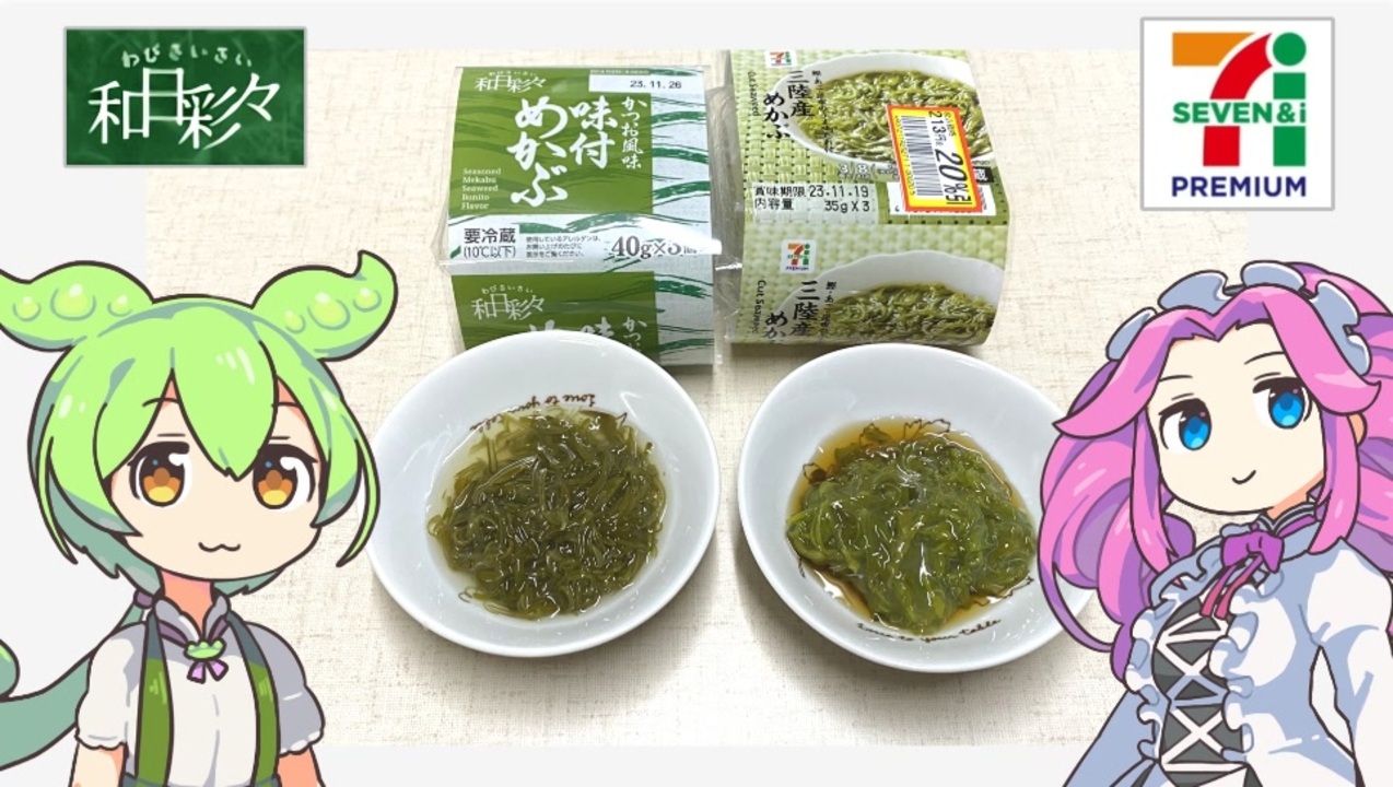トップバリュ以外のプライベートブランドも見たいというコメントを頂いたので<br>今回はセブンプレミアムの味付けめかぶです。<br><br><br><br>【参考】<br>味付三陸産めかぶ 3個入(セブンプレミアム)<br><a href="https://7premium.jp/product/search/detail?id=3724" target="_blank" rel="noopener nofollow">https://7premium.jp/product/search/detail?id=3724</a><br>わびさいさい 味付めかぶ 40g×3個(トップバリュ)<br><a href="https://www.topvalu.net/items/detail/4549414453652/" target="_blank" rel="noopener nofollow">https://www.topvalu.net/items/detail/4549414453652/</a><br>NHK for School 岩手県の特色リアス海岸と漁業(NHK)<br><a href="https://www2.nhk.or.jp/school/watch/clip/?das_id=D0005402199_00000" target="_blank" rel="noopener nofollow">https://www2.nhk.or.jp/school/watch/clip/?das_id=D0005402199_00000</a><br>あまちゃん(NHK)<br><a href="https://www.nhk.jp/p/ts/XZ1LQNZ4VN/" target="_blank" rel="noopener nofollow">https://www.nhk.jp/p/ts/XZ1LQNZ4VN/</a><br>「リアス式海岸」が「リアス海岸」と表記されるようになったのはなぜですか。(帝国書院)<br><a href="https://www.teikokushoin.co.jp/high/faq/detail/115/" target="_blank" rel="noopener nofollow">https://www.teikokushoin.co.jp/high/faq/detail/115/</a><br>知っていますか? わかめとめかぶと茎わかめの違い(ウェザーニュース)<br><a href="https://weathernews.jp/s/topics/202104/150285/" target="_blank" rel="noopener nofollow">https://weathernews.jp/s/topics/202104/150285/</a><br>めかぶとは?種類や産地、効能、おいしい食べ方まで解説します(井上海産物店)<br><a href="https://www.kaisou-tuhan.com/?mode=f15" target="_blank" rel="noopener nofollow">https://www.kaisou-tuhan.com/?mode=f15</a><br><br><br>【使用した素材】(※敬称略)<br>(合成音声)VOICEVOX/ずんだもん/四国めたん/春日部つむぎ<br><a href="https://voicevox.hiroshiba.jp/" target="_blank" rel="noopener nofollow">https://voicevox.hiroshiba.jp/</a><br>(立ち絵)坂本アヒル<br><a href="https://seiga.nicovideo.jp/seiga/im10788496" target="_blank" rel="noopener">im10788496</a>/<a href="https://seiga.nicovideo.jp/seiga/im10791276" target="_blank" rel="noopener">im10791276</a><br>(楽曲)甘茶の音楽工房/「楽しい麦畑」「フルーツパフェ」「お城の舞踏会」<br><a href="https://amachamusic.chagasi.com/" target="_blank" rel="noopener nofollow">https://amachamusic.chagasi.com/</a><br>(イラスト)フリーイラスト素材集ジャパクリップ<br><a href="https://japaclip.com/" target="_blank" rel="noopener nofollow">https://japaclip.com/</a><br><br><br>【関連動画】<br>セブンプレミアムのビール系飲料「ザ・ブリュー」<br><a href="https://www.nicovideo.jp/watch/sm42758113" target="_blank" rel="noopener nofollow">https://www.nicovideo.jp/watch/sm42758113</a>