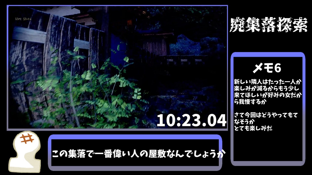 「廃集落探索」のRTA動画です<br><br>ゲームDLサイト→<a href="https://store.steampowered.com/app/2556950/_/?l=japanese" target="_blank" rel="noopener nofollow">https://store.steampowered.com/app/2556950/_/?l=japanese</a><br><br><span style="color: #000000; font-size: 14px;">単発RTA→</span><span style="color: #006699; font-size: 14px;"><a href="https://www.nicovideo.jp/mylist/66917940" target="_blank" rel="noopener">mylist/66917940</a></span><br><br>生放送コミュ→co4338697<br><br><span style="color: #000000; font-size: 14px;">ΔYoutube→</span><span style="color: #006699; font-size: 14px;"><a href="https://www.youtube.com/channel/UC4jVPBw6dP3mXCGJvRi3Xbw?view_as=subscriber" target="_blank" rel="noopener nofollow">https://www.youtube.com/channel/UC4jVPBw6dP3mXCGJvRi3Xbw?view_as=subscriber</a></span>