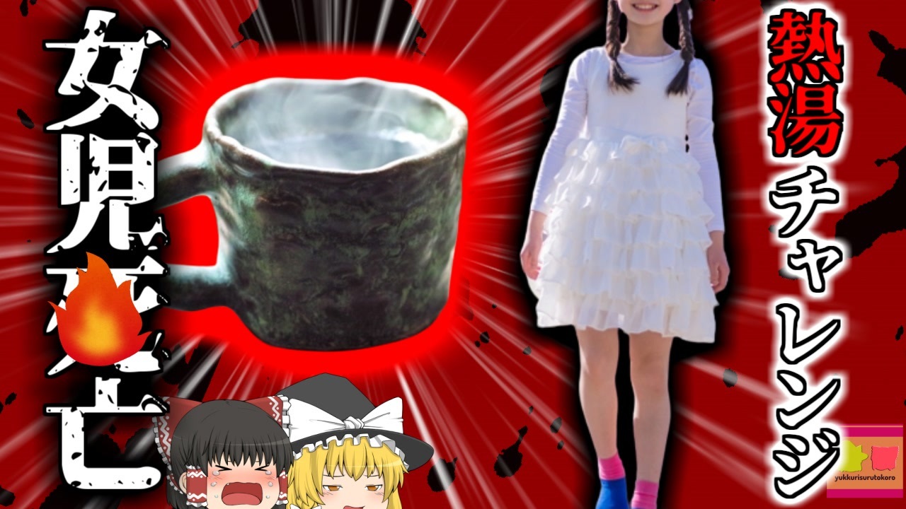 <a href="#" class="seekTime" data-seekTime="00:00" onclick="seekNicoPlayer('#00:00'); return false;">#00:00</a> 冒頭挨拶<br><a href="#" class="seekTime" data-seekTime="00:15" onclick="seekNicoPlayer('#00:15'); return false;">#00:15</a> 熱傷<br><a href="#" class="seekTime" data-seekTime="1:09" onclick="seekNicoPlayer('#1:09'); return false;">#1:09</a> 視聴上の注意<br><a href="#" class="seekTime" data-seekTime="1:49" onclick="seekNicoPlayer('#1:49'); return false;">#1:49</a> 本編開始<br><a href="#" class="seekTime" data-seekTime="2:17" onclick="seekNicoPlayer('#2:17'); return false;">#2:17</a> のどの熱傷<br><a href="#" class="seekTime" data-seekTime="4:09" onclick="seekNicoPlayer('#4:09'); return false;">#4:09</a> 危険なチャレンジ<br><a href="#" class="seekTime" data-seekTime="5:40" onclick="seekNicoPlayer('#5:40'); return false;">#5:40</a> 事故後<br><br>今回紹介するのは、以前リクエストがありました、とあるチャレンジ動画・熱傷に関する事例です。<br>アメリカ合衆国南東部、フロリダ州某所の病院に、一人の女児が緊急搬送されてきました。<br>彼女は市内に暮らす8歳の小学三年生「Aさん」で、自宅で呼吸困難となっているところを発見され、この病院に緊急搬送されてきました。<br>彼女は少し前に、のどにひどい熱傷を負い、それが原因で慢性呼吸不全となっており、この日は容体が急変し、呼吸困難で意識を失ってしまっていました。<br>搬送先の病院では、医師たちによってすぐに緊急手術が行われましたが、Aさんの意識は戻らず、そのままこの世を去ってしまいました。<br>彼女は喉に二度熱傷を負っており、それが原因で亡くなっていましたが、実はこの熱傷は、自宅で従妹と遊んでいた際、Youtubeで「熱湯チャレンジ」という動画を視聴し、従妹に煽られ、彼女は熱湯いりのマグとストローを用意し、それを勢いよく吸い上げ、熱傷を負っていました。<br>その後病院で処置を受けていたAさんでしたが、この日症状が悪化し、呼吸が出来なくなった結果、亡くなってしまったということでした。<br><br><br><br />※この動画は過去の事件を知り、現在でも同じことが発生する危険性を再認識、関与しないように促すための動画であり、視聴者を扇動、動揺を誘うためのコンテンツではありません。<br><br>ご要望にお応えして、メンバーシップの開設を行いました。<br>下記URLからも登録可能ですので、ご興味がある方は是非ご参加ください。<br><a href="https://www.youtube.com/channel/UCcT5a1J7XJW7CLYI2RKl4pw/join" target="_blank" rel="noopener nofollow">https://www.youtube.com/channel/UCcT5a1J7XJW7CLYI2RKl4pw/join</a><br><br><br>Twitter<br>→<a href="https://twitter.com/yukkurisurutoko" target="_blank" rel="noopener nofollow">https://twitter.com/yukkurisurutoko</a><br><br>取り急ぎ、簡易的にですがマイリストを作りました。<br>【ゆっくり解説】事故・事件関係紹介リスト <br><a href="https://www.nicovideo.jp/mylist/71034319" target="_blank" rel="noopener nofollow">https://www.nicovideo.jp/mylist/71034319</a><br>【ゆっくり解説】放射線系事故<br><a href="https://www.nicovideo.jp/mylist/71034368" target="_blank" rel="noopener nofollow">https://www.nicovideo.jp/mylist/71034368</a><br>【ゆっくり解説】鉄道系事故・事件関連<br><a href="https://www.nicovideo.jp/mylist/71034379" target="_blank" rel="noopener nofollow">https://www.nicovideo.jp/mylist/71034379</a>