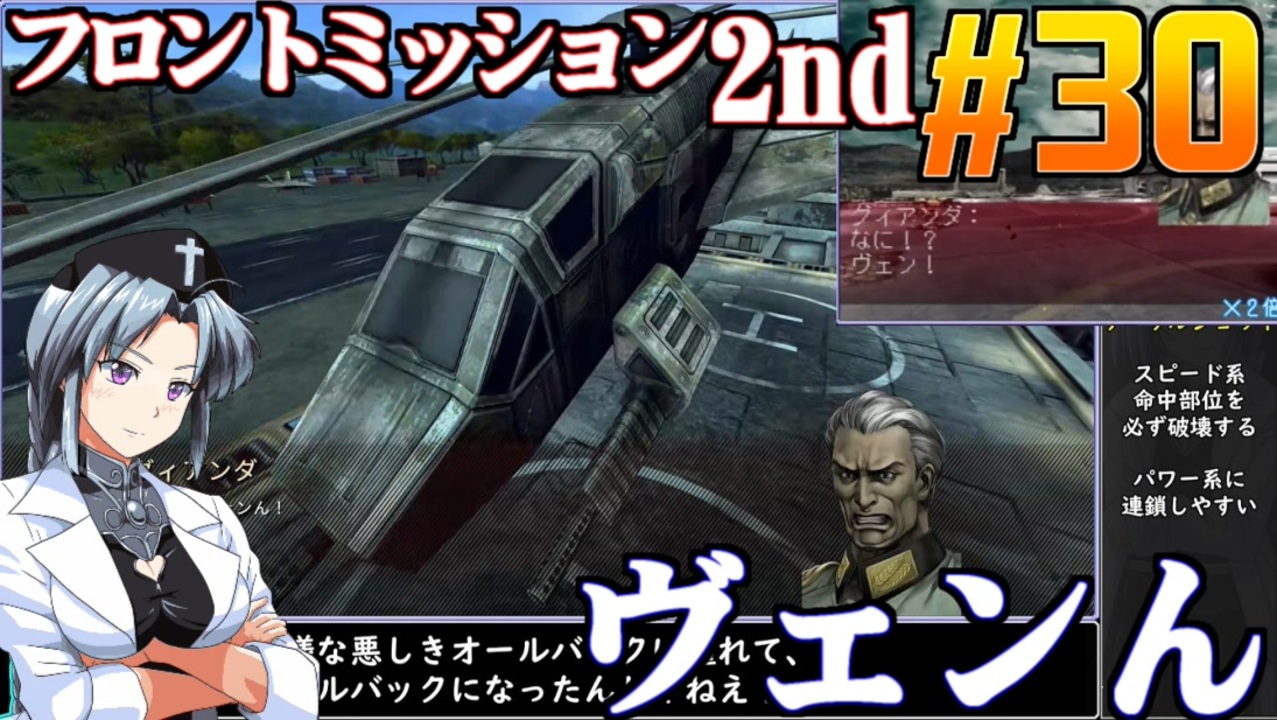 初今日は革命失敗の日!なので初投稿です。<br>MISSION.24 ディーアン空軍基地攻略戦/後半<br><br>◆FRONT MISSION 2nd:REMAKE◆<br>1997年スクウェアより発売されたSRPG<br>バングラデシュから国名を改めたアジアの国、アロルデシュを巡る陰謀と<br>二足歩行戦車・ヴァンツァーでの戦いをえがいた作品。<br>2023年10月5日switch版発売<br>本プレイはswitch版の桜乃そら実況動画<br><br>◆ニコニコクリエイターサポート<br><a href="https://creator-support.nicovideo.jp/registration/1203831" target="_blank" rel="noopener nofollow">https://creator-support.nicovideo.jp/registration/1203831</a><br>動画制作の励みになります<br><br>◆Twitter<br><a href="https://twitter.com/ikamono8bit" target="_blank" rel="noopener nofollow">https://twitter.com/ikamono8bit</a><br>◆youtube<br><a href="http://www.youtube.com/c/IkamonoY" target="_blank" rel="noopener nofollow">http://www.youtube.com/c/IkamonoY</a><br><br>シリーズまとめ <a href="https://www.nicovideo.jp/user/1203831/series" target="_blank" rel="noopener nofollow">https://www.nicovideo.jp/user/1203831/series</a><br>作った動画全部 <a href="https://www.nicovideo.jp/mylist/42963985" target="_blank" rel="noopener">mylist/42963985</a><br>作った動画全部2<a href="https://www.nicovideo.jp/mylist/70404393" target="_blank" rel="noopener">mylist/70404393</a><br>FM1シリーズ <a href="https://www.nicovideo.jp/mylist/44840712" target="_blank" rel="noopener">mylist/44840712</a><br>FM2シリーズ <a href="https://www.nicovideo.jp/mylist/49797840" target="_blank" rel="noopener">mylist/49797840</a><br>FM3シリーズ <a href="https://www.nicovideo.jp/mylist/53164228" target="_blank" rel="noopener">mylist/53164228</a><br>FM4シリーズ <a href="https://www.nicovideo.jp/mylist/58678376" target="_blank" rel="noopener">mylist/58678376</a><br>FM5シリーズ <a href="https://www.nicovideo.jp/mylist/62245527" target="_blank" rel="noopener">mylist/62245527</a>
