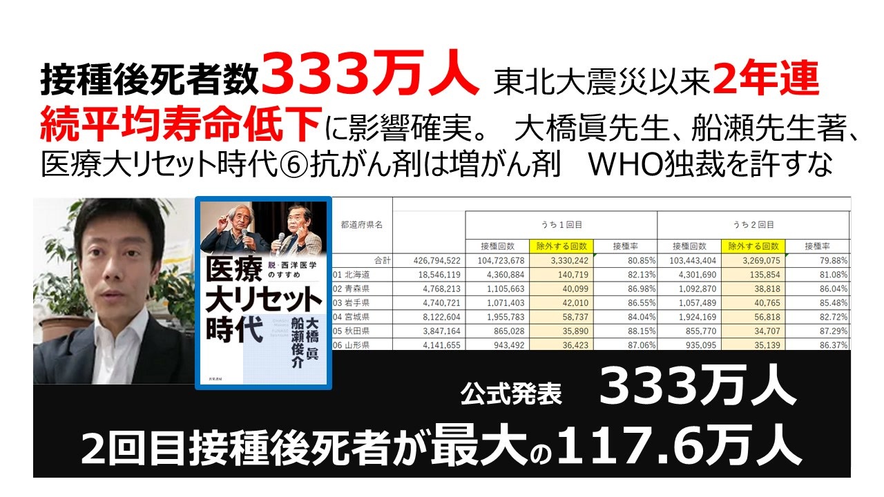 首相官邸サイト<br><a href="https://www.kantei.go.jp/jp/headline/kansensho/vaccine.html" target="_blank" rel="noopener nofollow">https://www.kantei.go.jp/jp/headline/kansensho/vaccine.html</a><br><br>「新型コロナ・ワクチン問題は嘘だらけ〜背後で蠢めく巨大利権の闇〜」(前半)<br>細川博司さん(医師)、木村朗ISF(独立言論フォーラム)編集長<br>isfweb.org/post-30131/<br><br>抗がん剤は猛毒だ!厚生労働省の技官から聞いたんだから。船瀬俊介の船瀬塾より<br><a href="https://www.nicovideo.jp/watch/so42035295" target="_blank" rel="noopener nofollow">https://www.nicovideo.jp/watch/so42035295</a><br><br>【医療洗脳を脱せよ2】 311万人の接種後死者数が語るもの 生物兵器ワクチンは百害あって一利なし 日本人は絶滅危惧種か?<br><a href="https://www.nicovideo.jp/watch/sm42835442" target="_blank" rel="noopener nofollow">https://www.nicovideo.jp/watch/sm42835442</a><br><br>真田信秋 日本国独立宣言論 私は独立を宣言する! キンドル出版<br><a href="https://www.amazon.co.jp/dp/B0CT86DX9G/" target="_blank" rel="noopener nofollow">https://www.amazon.co.jp/dp/B0CT86DX9G/</a><br><br>