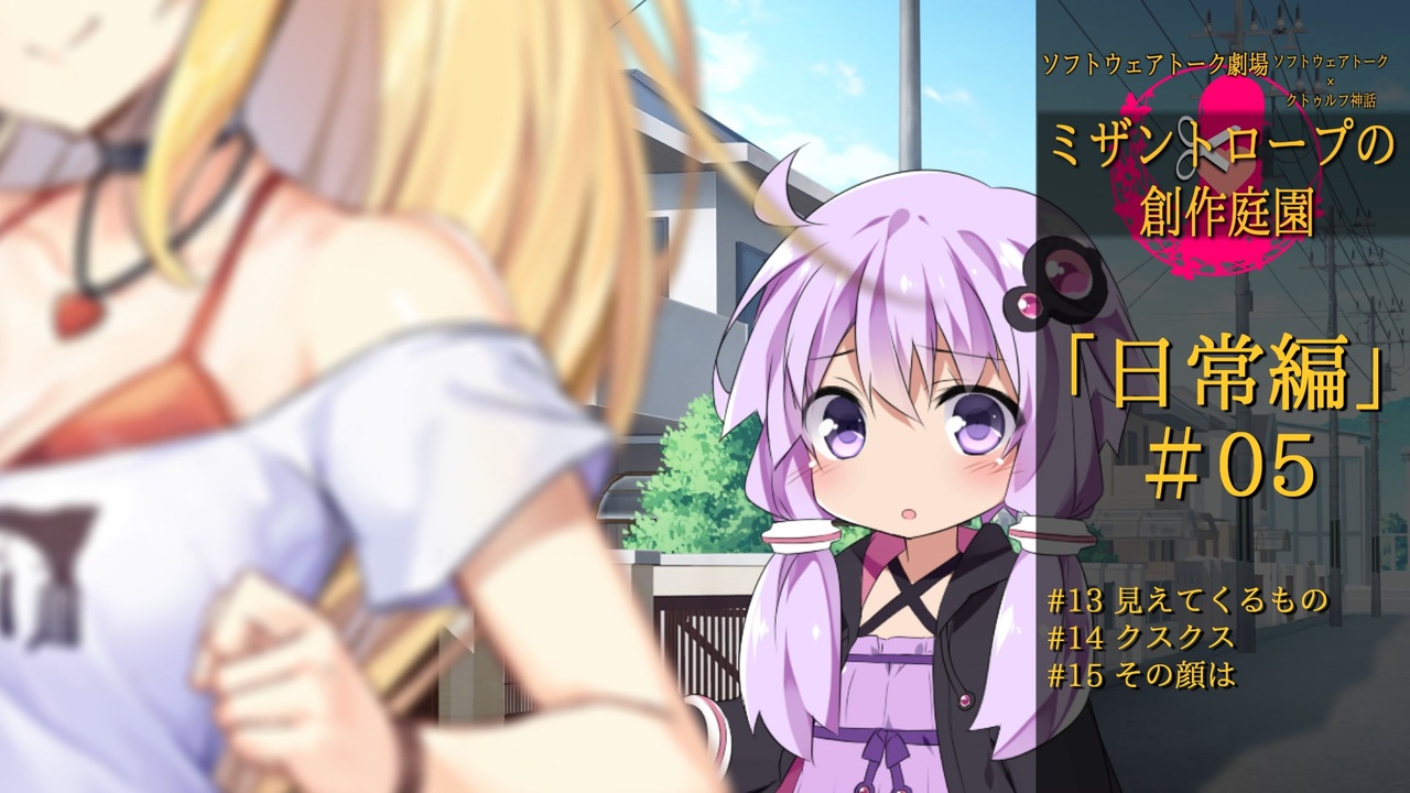 #13 見えてくるもの<br>#14 クスクス<br>#15 その顔は<br><br>◆注意事項<br>・日常、ギャグ、シリアスが含まれる場合があります<br>・クトゥルフ神話(TRPGではないです)<br>・ソフトウェアトーク劇場<br>・グロテスク、残酷、猟奇的、暴力的な描写を含みます<br>・クトゥルフ神話、幽霊、妖怪などに対する独自解釈<br>・登場するソフトウェアトークのキャラクターの二次設定<br>・登場するキャラクターの血縁関係の二次設定<br>・オリキャラ<br><br>上記内容を留意した上で、<br>ご視聴していただくようお願いします。<br><br>◆使用合成音声ソフト<br>CeVIO AI 小春六花 トークボイス<br>ガイノイドTALK 鳴花ヒメ・ミコト<br>CeVIO AI すずきつづみ トークボイス<br>A.I.VOICE 結月ゆかり<br>CeVIO AI 花隈千冬 トークボイス<br>CeVIO AI 弦巻マキ トークボイス<br>IA「CeVIO Creative Studio」<br>VOICEVOX:玄野武宏<br><br>◆使用BGM<br>フリーブルー/MAKOOTO様:<a href="https://commons.nicovideo.jp/works/nc221284" target="_blank" rel="noopener">nc221284</a><br>小さな企み/もっぴーさうんど様:<a href="https://commons.nicovideo.jp/works/nc191036" target="_blank" rel="noopener">nc191036</a><br>Cecilia/セシリア -remix-/田中芳典様:<a href="https://commons.nicovideo.jp/works/nc222961" target="_blank" rel="noopener">nc222961</a><br>日本の雪景色/田中芳典様:<a href="https://commons.nicovideo.jp/works/nc210311" target="_blank" rel="noopener">nc210311</a><br>2:23 AM/しゃろう様:<a href="https://commons.nicovideo.jp/works/nc231865" target="_blank" rel="noopener">nc231865</a><br><br>◆その他<br>背景素材 事務所_応接室:きまぐれアフター 様<br>著作権フリー背景素材集[家]:きまぐれアフター 様<br>みにくる背景CG素材集『日常編』part14:背景専門店みにくる 様<br>クトゥルフ神話生物素材集 第二弾!!:インスマス計劃(あんきも 様)<br>みにくる背景CG素材集『日常編』part12:背景専門店みにくる 様<br><br>◆他に投稿しているソフトウェアトーク動画シリーズについて<br>『○○な人』(完結済):<a href="https://www.nicovideo.jp/series/6946" target="_blank" rel="noopener">series/6946</a><br>ささやきに耳を傾けて(完結済):<a href="https://www.nicovideo.jp/series/124858" target="_blank" rel="noopener">series/124858</a><br>探索者『すずきつづみ』(完結済):<a href="https://www.nicovideo.jp/series/173614" target="_blank" rel="noopener">series/173614</a><br>単発ボイロ劇場:<a href="https://www.nicovideo.jp/series/209904" target="_blank" rel="noopener">series/209904</a><br>君と僕のGlory Days:<a href="https://www.nicovideo.jp/series/279742" target="_blank" rel="noopener">series/279742</a><br>ボイロTRPG:<a href="https://www.nicovideo.jp/series/210184" target="_blank" rel="noopener">series/210184</a>