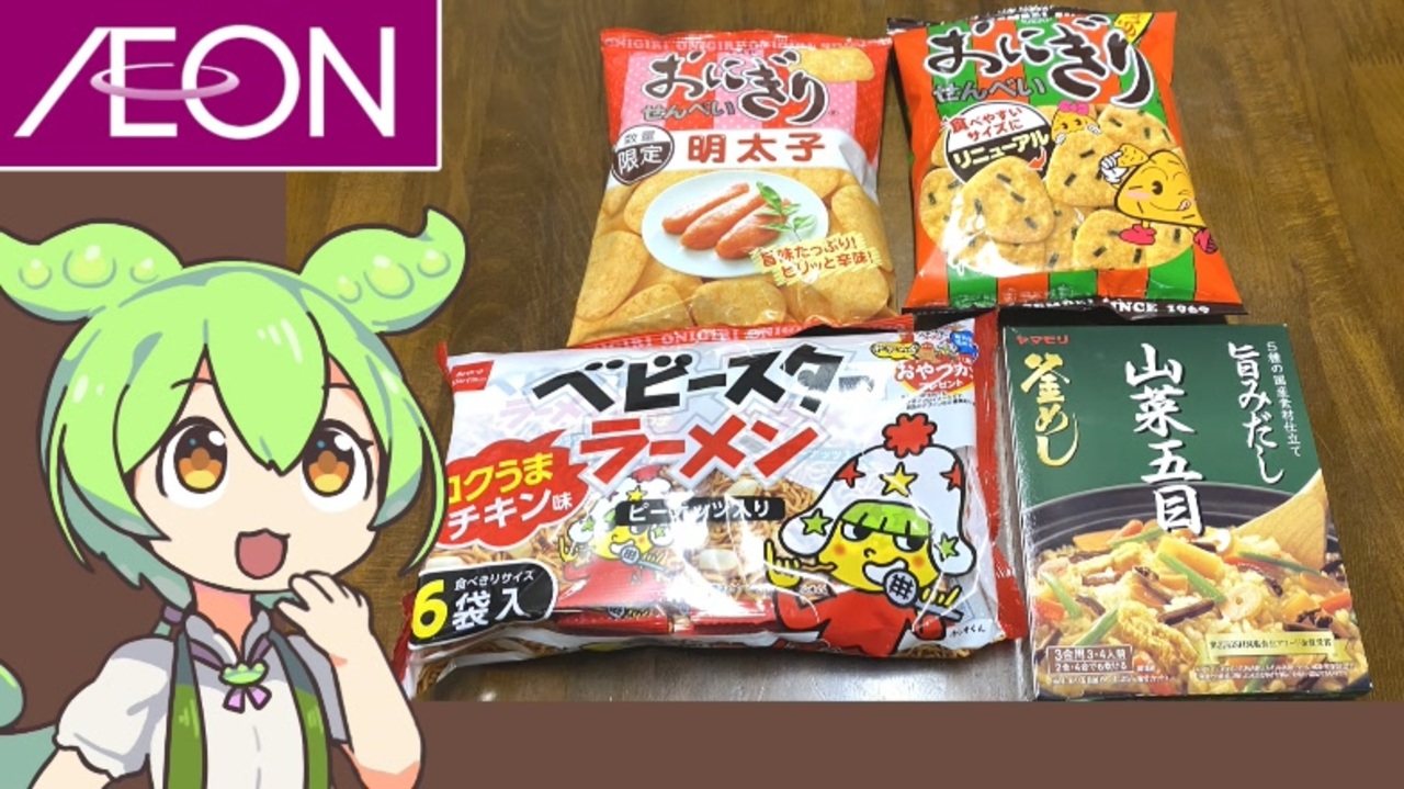 イオンではたまに都道府県のご当地フェアがかいさいされているのですが<br>これを紹介するのも面白いかなと思い、幾つか買ってきました。<br>どこの商品かみなさんは分かりますか?<br><br><br>【参考】<br>株式会社マスヤ<br><a href="http://www.masuya.co.jp/index.html" target="_blank" rel="noopener nofollow">http://www.masuya.co.jp/index.html</a><br>おにせんトリビア「おにぎりせんべい」47都道府県認知度調査(おにぎりクラブ)<br><a href="https://onigiri-club.jp/contents/305049" target="_blank" rel="noopener nofollow">https://onigiri-club.jp/contents/305049</a><br>マスヤ おにぎりせんべい(セブンイレブン)<br><a href="https://www.sej.co.jp/products/a/item/310595/" target="_blank" rel="noopener nofollow">https://www.sej.co.jp/products/a/item/310595/</a><br><br><br>【使用した素材】(※敬称略)<br>(合成音声)VOICEVOX/ずんだもん/四国めたん/春日部つむぎ<br><a href="https://voicevox.hiroshiba.jp/" target="_blank" rel="noopener nofollow">https://voicevox.hiroshiba.jp/</a><br>(立ち絵)坂本アヒル<br><a href="https://seiga.nicovideo.jp/seiga/im10788496" target="_blank" rel="noopener">im10788496</a>/<a href="https://seiga.nicovideo.jp/seiga/im10791276" target="_blank" rel="noopener">im10791276</a><br>(楽曲)甘茶の音楽工房/「日々是好日」<br><a href="https://amachamusic.chagasi.com" target="_blank" rel="noopener nofollow">https://amachamusic.chagasi.com</a>