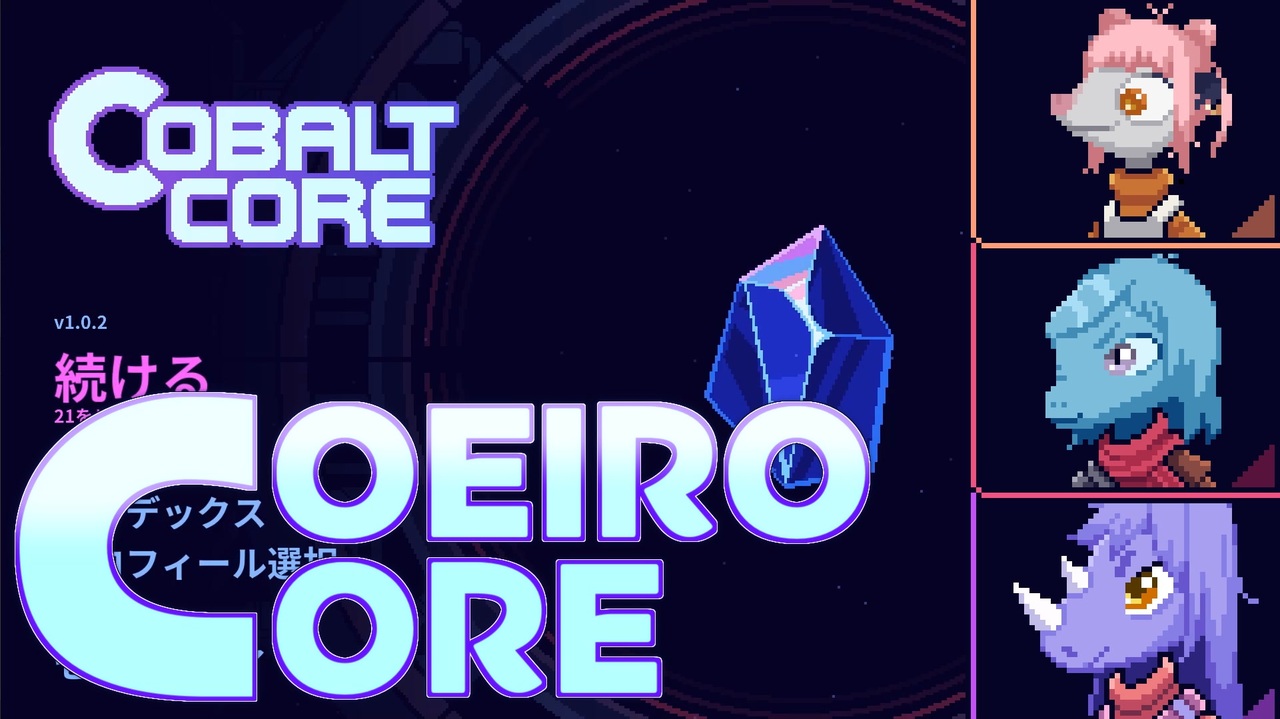 立ち絵改変してるときに何度か正気に戻りかけました<br>ストアページ <a href="https://store.steampowered.com/app/2179850/Cobalt_Core/" target="_blank" rel="noopener nofollow">https://store.steampowered.com/app/2179850/Cobalt_Core/</a><br><br>使用したフォント<br>源暎ラテミンv2 プイッコ<br><br>COEIROINK: MANA<br>COEIROINK: KANA<br>COEIROINK: ディアちゃん<br>COEIROINK: アルマちゃん<br>COEIROINK: つくよみちゃん<br>COEIROINK: カナタ(CV.おふとんP)<br /><span style="color: #76a5af; font-size: 16px;"><strong>宮舞モカの新ドット立ち絵公開:</strong></span><span style="color: #1155cc; font-size: 16px;"><strong>seiga/<a href="https://seiga.nicovideo.jp/seiga/im11455829" target="_blank" rel="noopener">im11455829</a></strong></span><br>疾走茜シリーズ:<a href="https://www.nicovideo.jp/series/6278" target="_blank" rel="noopener">series/6278</a> <a href="https://www.nicovideo.jp/mylist/65486281" target="_blank" rel="noopener">mylist/65486281</a> 暴走ヒメシリーズ:<a href="https://www.nicovideo.jp/series/6327" target="_blank" rel="noopener">series/6327</a> <a href="https://www.nicovideo.jp/mylist/65486282" target="_blank" rel="noopener">mylist/65486282</a><br>【AmongUs】<a href="https://www.nicovideo.jp/series/207395" target="_blank" rel="noopener">series/207395</a> <a href="https://www.nicovideo.jp/mylist/70697005" target="_blank" rel="noopener">mylist/70697005</a><br>【単発】<a href="https://www.nicovideo.jp/series/368927" target="_blank" rel="noopener">series/368927</a><br><br>トークソフト動画投稿者向けDiscordサーバー稼働中<a href="https://t.co/ZsC1moPuJB" target="_blank" rel="noopener nofollow">https://t.co/ZsC1moPuJB</a><br>