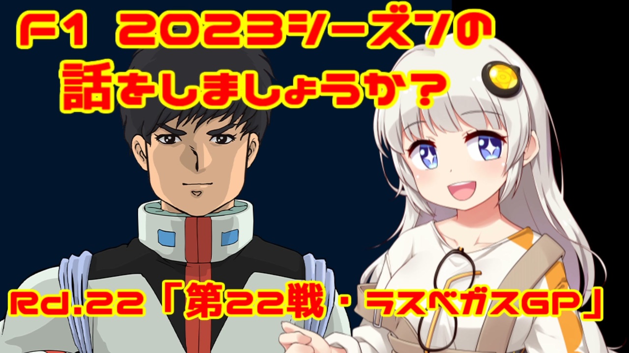 「ユウキ、アルファタウリ・AT04、いきまーーーす!」by紲星あかり<br><br><br>おはこんばんちは、紲星あかりです。<br>この動画は、F1 2023年シーズンをダイジェストでお送りしています。<br>今回は第22戦・ラスベガスGPをお送りします。<br>2023年のF1も残り2戦!佳境に入った2位以下のランキング争いの中、新しく生まれ変わったラスベガスGPの頂点に立つのは?<br><br><br><span style="color: red;">(ご注意)この動画の情報は真実とは限りません。また、誤字・脱字が含まれる場合があります。ご了承ください。</span><br><br>前→第21戦・サンパウロGP <a href="https://www.nicovideo.jp/watch/sm43019442" class="watch">sm43019442</a><br>次→最終戦・アブダビGP <a href="https://www.nicovideo.jp/watch/sm43105464" class="watch">sm43105464</a><br><br>F12023シーズンの話をしましょうか?マイリスト→<a href="https://www.nicovideo.jp/mylist/74761174" target="_blank" rel="noopener">mylist/74761174</a><br> <br><br>うp主のF1動画シリーズ<br><br>F12022シーズンの話をしましょうか?マイリスト→<a href="https://www.nicovideo.jp/mylist/72892585" target="_blank" rel="noopener">mylist/72892585</a><br>F12021シーズンの話をしましょうか?マイリスト→<a href="https://www.nicovideo.jp/mylist/70735663" target="_blank" rel="noopener">mylist/70735663</a><br>F12020シーズンの話をしましょうか?マイリスト→<a href="https://www.nicovideo.jp/mylist/67651731" target="_blank" rel="noopener">mylist/67651731</a> <br>F12019シーズンの話をしましょうか?<span style="color: #000000; font-size: 14px;">マイリスト</span><span style="color: #000000; font-size: 13px;">→</span><a href="https://www.nicovideo.jp/mylist/64678414" target="_blank" rel="noopener">mylist/64678414</a><br>F12018シーズンの話をしましょうか?<span style="color: #000000; font-size: 14px;">マイリスト</span><span style="color: #000000; font-size: 13px;">→</span><a href="https://www.nicovideo.jp/mylist/61514606" target="_blank" rel="noopener">mylist/61514606</a><br>F1の話をしましょうか?マイリスト→<a href="https://www.nicovideo.jp/mylist/40499353" target="_blank" rel="noopener">mylist/40499353</a><br>F1の話をしましょうか?OPフルバージョン→<a href="https://www.nicovideo.jp/mylist/59030210" target="_blank" rel="noopener">mylist/59030210</a><br>F1 CM集→<a href="https://www.nicovideo.jp/mylist/57297507" target="_blank" rel="noopener">mylist/57297507</a><br><br>