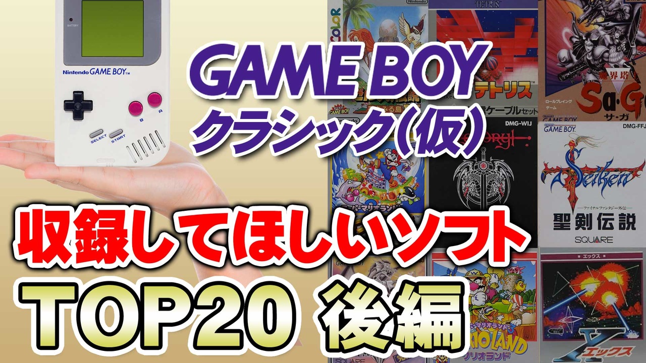 前回の動画にギフト・ニコニ広告して下さった方、ありがとうございました。<br>原則、「前編」「後編」合わせて毎回約30分を予定しています。<br><br>▼第157回「ゲームボーイクラシック(仮)に収録してほしいソフトTOP20」<br>前編:<a href="https://www.nicovideo.jp/watch/sm43027176" class="watch">sm43027176</a>(第20位~第11位)<br><br>▼関連動画<br>「魔界塔士Sa・Ga」<a href="https://www.nicovideo.jp/watch/sm33371671" class="watch">sm33371671</a><br>「Sa・Ga2秘宝伝説」<a href="https://www.nicovideo.jp/watch/sm37973640" class="watch">sm37973640</a><br>「聖剣伝説-FF外伝」<a href="https://www.nicovideo.jp/watch/sm33862145" class="watch">sm33862145</a><br>「テトリス争奪戦」<a href="https://www.nicovideo.jp/watch/sm39188323" class="watch">sm39188323</a><br>「DQMテリワン」<a href="https://www.nicovideo.jp/watch/sm41801542" class="watch">sm41801542</a><br><br>■youtubeはこちら <a href="https://youtu.be/G3cBA0F2DZo" target="_blank" rel="noopener nofollow">https://youtu.be/G3cBA0F2DZo</a><br>■ゲーム夜話ツイッター <a href="https://twitter.com/gameyawa" target="_blank" rel="noopener nofollow">https://twitter.com/gameyawa</a><br><br>▼使用画像<br>著作者:jannoon028 出典:Freepik