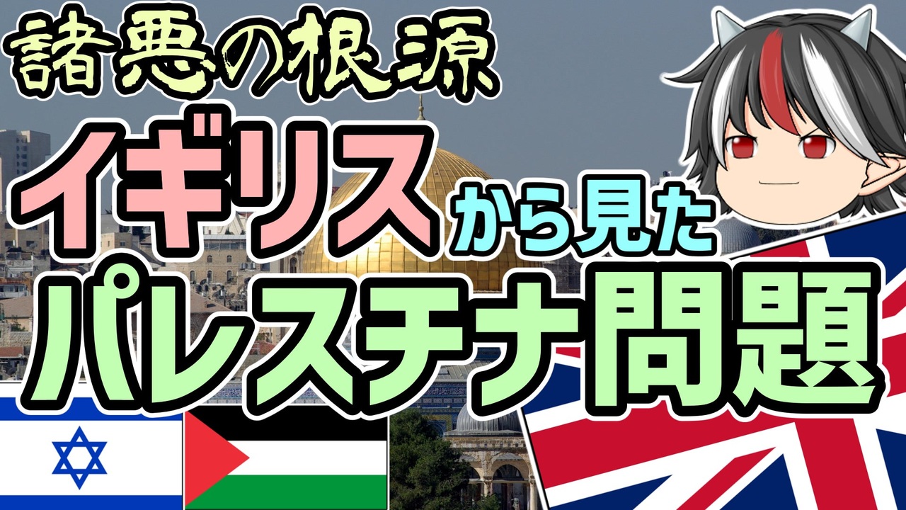 今回は諸悪の根源であるイギリスから見たパレスチナ問題です。 <br>時代としてはイギリス委任統治時代、三枚舌外交から国連分割決議までを取り扱います。<br><br><br>次回:<a href="https://www.nicovideo.jp/watch/sm43598577" class="watch">sm43598577</a>(イギリスから見た明治時代外交編)<br>前回:<a href="https://www.nicovideo.jp/watch/sm42522898" class="watch">sm42522898</a>(オランダから見た開国)<br>マイリスト:<a href="https://www.nicovideo.jp/mylist/66079510" target="_blank" rel="noopener">mylist/66079510</a><br><br>ご意見・ご感想・ご要望があればぜひコメントしてください。<br>内容の都合上かなり端折ってますがご了承ください。<br><br>ついったー<br><a href="https://twitter.com/youz26400114" target="_blank" rel="noopener nofollow">https://twitter.com/youz26400114</a><br><br>欲しいものリスト<br><a href="https://www.amazon.co.jp/hz/wishlist/ls/26SYYFRSTGV7Y/" target="_blank" rel="noopener nofollow">https://www.amazon.co.jp/hz/wishlist/ls/26SYYFRSTGV7Y/</a><br><br><a target="_blank" href="https://qa.nicovideo.jp/faq/show/19424?site_domain=default" style="font-size: 13px;color: #657586; text-decoration: underline; line-height: 1.4">この動画は投稿者によって修正されました</a>