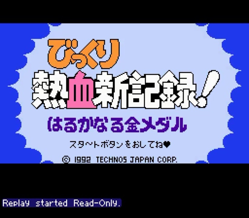 【TAS】FCびっくり熱血新記録!はるかなる金メダル_試作(7分33秒)<br><br>時間:7分33秒<br>追記回数:1394回<br>ソフト:ファミコン版 びっくり熱血新記録!はるかなる金メダル<br><br>当ゲームは、1992年6月26日に発売されました。<br>当時、主も相当やりこみました。<br>早速ですが、今まで上がっていたTAS動画を拝見しながら、試作を作成してみました。<br>主に、以下の動画を参考にさせて頂きました_(. .)_<br><a href="https://www.nicovideo.jp/watch/sm4604850" class="watch">sm4604850</a><br><br>TASとしては、個人賞の発表が終わった直後をコマ送りしたタイミングがMovieEndとなります。<br>総合順位の発表から先は、何も押さなくても進みます。<br>まだ細かい調整はしていないですが、辛うじて最終入力タイムだけ(2秒ほど)上回ることは出来ました。<br>ですが、参考にさせて頂いた方の動画は、個人賞の発表が終わったタイミングは7分8秒..。<br>25秒の開きがあり、まだまだです。<br><br>当動画はユーチューブでも上げています<br><a href="https://youtu.be/azTC9auAmBs" target="_blank" rel="noopener nofollow">https://youtu.be/azTC9auAmBs</a>
