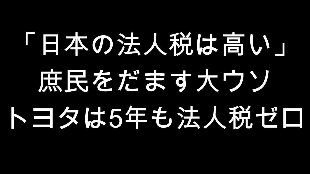 この投稿は11月23日、YouTubeにアップしたものです。<br><a href="https://youtu.be/NOXknH6GQG8" target="_blank" rel="noopener nofollow">https://youtu.be/NOXknH6GQG8</a><br><br>トヨタは5年間も法人税を払わなかった。元国税調査官が暴露する「日本の法人税は高い」の大ウソ<br><a href="https://www.mag2.com/p/news/587886" target="_blank" rel="noopener nofollow">https://www.mag2.com/p/news/587886</a><br><a href="https://www.mag2.com/p/news/587886/2" target="_blank" rel="noopener nofollow">https://www.mag2.com/p/news/587886/2</a><br><a href="https://www.mag2.com/p/news/587886/3" target="_blank" rel="noopener nofollow">https://www.mag2.com/p/news/587886/3</a><br>消費税を1円も払わず 逆に6千億円もの還付金をもらうトヨタ<br><a href="https://www.nicovideo.jp/watch/sm42900519" target="_blank" rel="noopener nofollow">https://www.nicovideo.jp/watch/sm42900519</a><br>強きを助け弱きを挫く 悪法でしかない消費税<br><a href="https://www.nicovideo.jp/watch/sm42930418" target="_blank" rel="noopener nofollow">https://www.nicovideo.jp/watch/sm42930418</a>