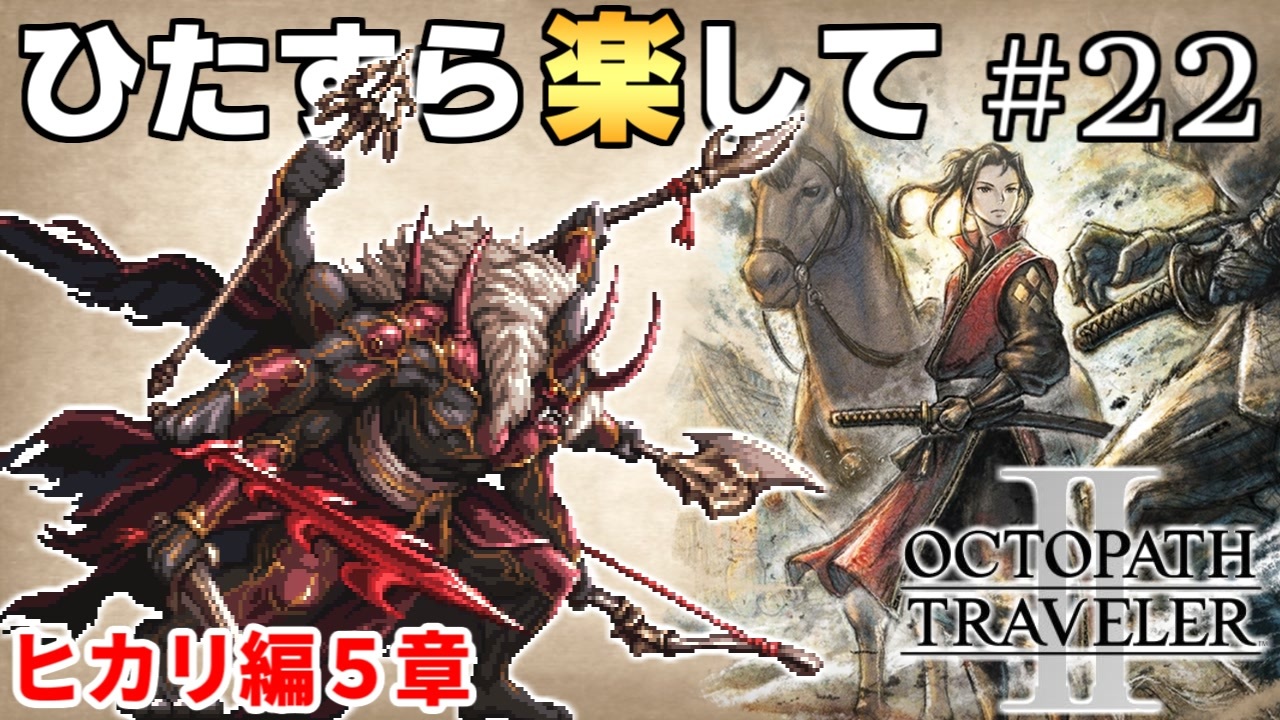 ヒカリ編5章<br><br>プレイ条件<br>1.最少勝利回数でラスボス&裏ボス撃破<br>2.必須戦闘以外で稼がない(捕獲・集金・盗む)<br>3.道中のアイテムは拾わない(宝箱・隠されたアイテム)<br>4.道中では確率に頼らない(確率系のFC・確率系の一緒に商売禁止)<br>5.傭兵よび・スケジュール交渉・加勢・摩訶不思議の舞・幸運の矢禁止<br>6.編集は頑張らない<br>※申し訳ないがバグ利用は全面的にNG<br><br><a href="https://www.nicovideo.jp/watch/sm43048783" class="watch">sm43048783</a>←前|次→<a href="https://www.nicovideo.jp/watch/sm43105569" class="watch">sm43105569</a><br>part1→<a href="https://www.nicovideo.jp/watch/sm42436125" class="watch">sm42436125</a><br>再生リスト→<a href="https://www.nicovideo.jp/mylist/75397576" target="_blank" rel="noopener">mylist/75397576</a><br><br>ひたすら楽してオクトラ1はこちら→<a href="https://www.nicovideo.jp/watch/sm37813793" class="watch">sm37813793</a><br><br>他の挑戦シリーズとか→<a href="https://www.nicovideo.jp/mylist/3220744" target="_blank" rel="noopener">mylist/3220744</a> <br>YouTube版→<a href="https://goo.gl/oey5Y7" target="_blank" rel="noopener nofollow">https://goo.gl/oey5Y7</a><br>ニコニコニュースのインタビュー記事→<a href="https://originalnews.nico/284602" target="_blank" rel="noopener nofollow">https://originalnews.nico/284602</a><br><br>© 2023 SQUARE ENIX CO., LTD. All Rights Reserved.