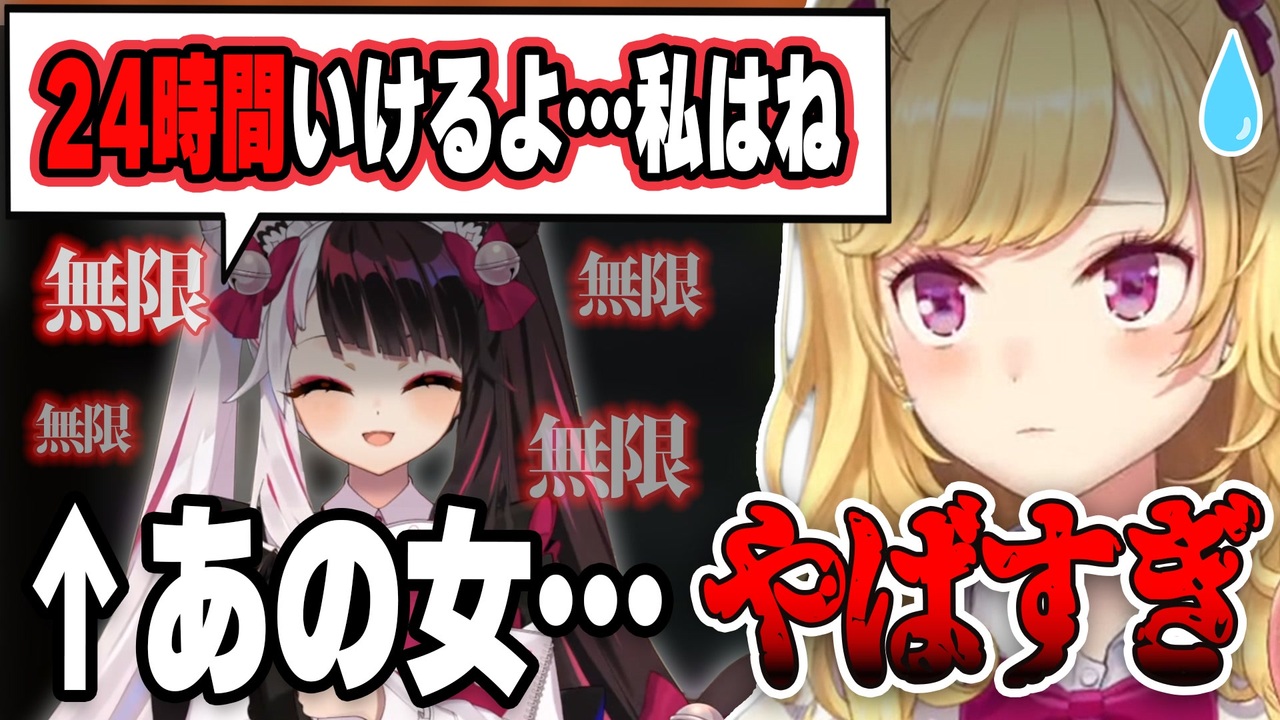 夜見「テラリぇあ?いいよぉ~。無限ぇあ~」<br><br><a href="#" class="seekTime" data-seekTime="1:18" onclick="seekNicoPlayer('#1:18'); return false;">#1:18</a> 夜見のモンハン耐久の無限力<br><br>〇元動画はこちら↓<br>【Steamオータムセール】積みゲーを増やす配信【にじさんじ/鷹宮リオン】<br><a href="https://www.youtube.com/watch?v=2hBeYjB2t4A" target="_blank" rel="noopener nofollow">https://www.youtube.com/watch?v=2hBeYjB2t4A</a><br>【モンスターハンターライズ:サンブレイク】#08 MR4~ リオン様と並走!MR10?本気?【夜見れな/にじさんじ】<br><a href="https://www.youtube.com/watch?v=yD7v4o8Y9bw" target="_blank" rel="noopener nofollow">https://www.youtube.com/watch?v=yD7v4o8Y9bw</a><br><br>▼登場ライバーのチャンネル<br>〇鷹宮リオン / Rion Takamiya<br><a href="https://www.youtube.com/channel/UCV5ZZlLjk5MKGg3L0n0vbzw" target="_blank" rel="noopener nofollow">https://www.youtube.com/channel/UCV5ZZlLjk5MKGg3L0n0vbzw</a><br>〇夜見れな <br><a href="https://www.youtube.com/channel/UCL34fAoFim9oHLbVzMKFavQ" target="_blank" rel="noopener nofollow">https://www.youtube.com/channel/UCL34fAoFim9oHLbVzMKFavQ</a> <br>〇天宮 こころ<br> <a href="https://www.youtube.com/channel/UCkIimWZ9gBJRamKF0rmPU8w" target="_blank" rel="noopener nofollow">https://www.youtube.com/channel/UCkIimWZ9gBJRamKF0rmPU8w</a><br><br>Youtube ver<br><a href="https://youtu.be/KUPxnb-cXSU" target="_blank" rel="noopener nofollow">https://youtu.be/KUPxnb-cXSU</a>