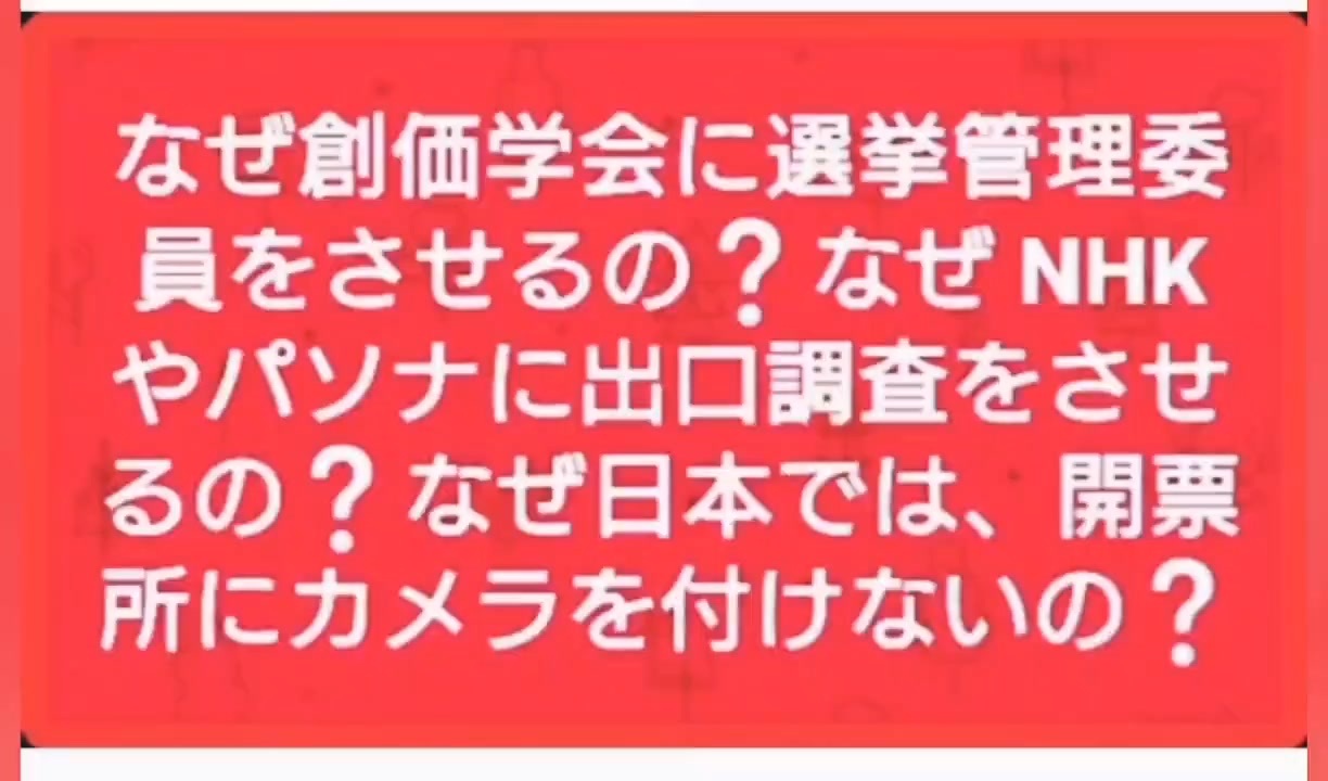 【拡散】不正選挙の実態<br><br>東京都杉並区の住民団体が選挙不正を疑い、リアルな出口調査を独自で実施した結果、状況証拠として“真っ黒”だったという内容の動画に、問いかけの画像をつけました。<br><br><br><br>【不正選挙大国】<br><br>この国の選挙はおかしいです。<br>大きな選挙の度に開票前の20時に<br>当確が出ること自体おかしいですが<br><br>その根拠となる出口調査そのものが<br>インチキです<br><br>動画は、東京都杉並区の住民団体が<br>選挙不正を疑い、リアルな出口調査を<br>独自で実施した結果、状況証拠として<br>“真っ黒”だったという内容<br>メディアと連動して選挙不正が堂々と<br>行われています<br><br><br>#出口調査の闇<br><br>#不正選挙<br><br>#ムサシの闇<br><br>全編→<a href="https://t.co/1iL2uGMogA" target="_blank" rel="noopener nofollow">https://t.co/1iL2uGMogA</a><br><br><a href="https://t.co/tJv11IPI9L" target="_blank" rel="noopener nofollow">https://t.co/tJv11IPI9L</a><br><br><br><br><br><br><br><br />著作権、肖像権に配慮して作成しております。<br><br>◆気になったニュースの台本!?<br>メモ代わりに作った台本をそのままあげてます<br><a href="https://keiichiro8140.hatenablog.com/." target="_blank" rel="noopener nofollow">https://keiichiro8140.hatenablog.com/.</a><br><br><br>ここからはシリーズ紹介<br><br><br>◆ ワクチン解毒・デトックス<br><a href="https://x.gd/fZweg" target="_blank" rel="noopener nofollow">https://x.gd/fZweg</a><br><br>◆ウイリアム・マキス博士のがん治療(イベルメクチン・フェンベンダゾール等)<br><a href="https://x.gd/AtFYS" target="_blank" rel="noopener nofollow">https://x.gd/AtFYS</a><br><br>◆予防接種健康被害救済制度<br><a href="https://x.gd/0xK9x" target="_blank" rel="noopener nofollow">https://x.gd/0xK9x</a><br><br>◆気になったニュース #1501~<br><br>◆ 【ショートver】気になったニュース<br><a href="https://x.gd/7MxXC" target="_blank" rel="noopener nofollow">https://x.gd/7MxXC</a><br><br>◆ 気になったニュース #1001~<br><a href="https://x.gd/Lp8gv" target="_blank" rel="noopener nofollow">https://x.gd/Lp8gv</a><br><br>◆ 気になったニュース #501~<br><a href="https://x.gd/EmbS4" target="_blank" rel="noopener nofollow">https://x.gd/EmbS4</a><br><br>◆ 気になったニュース #1~#500<br><a href="https://x.gd/uPhNb" target="_blank" rel="noopener nofollow">https://x.gd/uPhNb</a><br><br>◆ X(旧Twitter)・テレグラムで気になった情報<br><a href="https://x.gd/YG6FT" target="_blank" rel="noopener nofollow">https://x.gd/YG6FT</a><br><br>◆ 日比谷5万人パレードデ⚪生放送アーカイブ動画<br><a href="https://x.gd/3CHJv" target="_blank" rel="noopener nofollow">https://x.gd/3CHJv</a><br><br>◆日比谷5万人パレード⚪モのマイリスト作ってみました<br><a href="https://nico.ms/mylist/76828848?ref=sp_other" target="_blank" rel="noopener nofollow">https://nico.ms/mylist/76828848?ref=sp_other</a><br><br>◆3.30 令和の百姓⚪⚪<br><a href="https://www.nicovideo.jp/series/511791?ref=garage_share_other" target="_blank" rel="noopener nofollow">https://www.nicovideo.jp/series/511791?ref=garage_share_other</a><br><br>◆ 及川幸久さんの【XNEWS】シリーズ<br><a href="https://x.gd/3k78K" target="_blank" rel="noopener nofollow">https://x.gd/3k78K</a><br><br>◆これまでの動画<a href="https://x.gd/sPXoJ" target="_blank" rel="noopener nofollow">https://x.gd/sPXoJ</a><br><br>◆もしも(BAN)の時のためのマイリンク集<a href="https://lit.link/K-16_News44" target="_blank" rel="noopener nofollow">https://lit.link/K-16_News44</a><br><br>