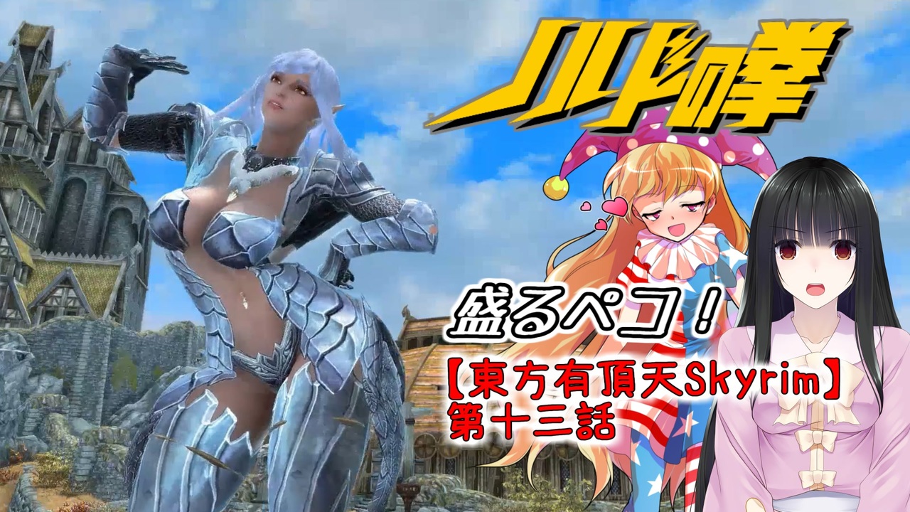 無事揺れました!<br>しかし、一時期髪の毛と服がミョンミョン伸びて大変でした。<br><br>MOD入れたり抜いたりしたら直ったんですけどね。<br><br>しかし、対処が3BAやBodyslideよりも時間がかかったことがあるのですが、<br>3D酔いが発生。<br>いままで大丈夫だったのになんでさ?<br><br>コンソールでfovとか色々調整したのですがダメ。<br>でも、良さげなカメラ制御のMODを入れたらなんとかなりました。<br><br><span style="color: #0000ff; font-size: 16px;"><strong>【東方有頂天Skyrim】ノルドの拳<br><a href="https://www.nicovideo.jp/mylist/71687366" target="_blank" rel="noopener">mylist/71687366</a><br><a href="https://www.nicovideo.jp/series/255034" target="_blank" rel="noopener">series/255034</a><br><br>前回<<a href="https://www.nicovideo.jp/watch/sm41660631" class="watch">sm41660631</a><br>次回><a href="https://www.nicovideo.jp/watch/sm43119477" class="watch">sm43119477</a></strong></span><br>