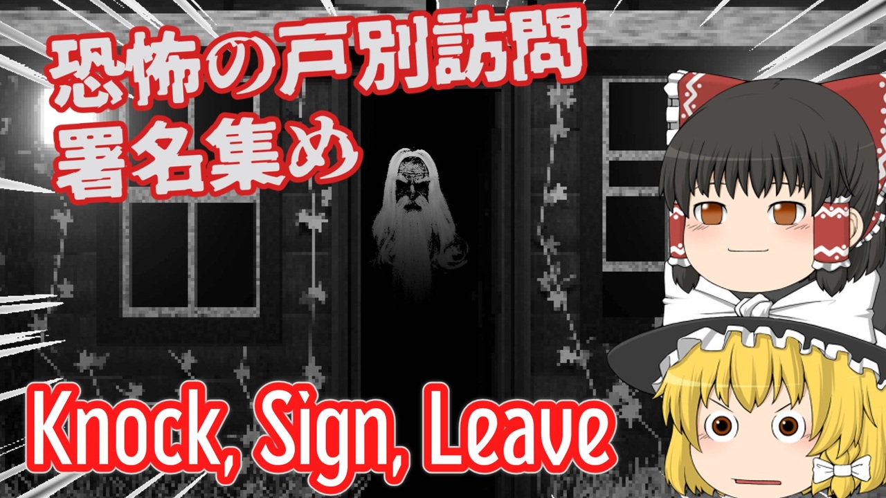 ゆっくり霊夢とゆっくり魔理沙が海外のホラーゲームに挑むようです。<br><br>本動画は東方Projectの二次創作です。 <br><br>◎あらすじ◎<br>リゾ上院議員のアピールのため、環境問題や子どもに関する<br>嘆願書の署名を集めることになった主人公。<br>だが、戸別訪問するよう命じられた通りはどこか雰囲気がおかしい…<br><br>COEIROINK: 黒聡鵜月(主人公)<br>COEIROINK: 巧兄(ケニー)<br>COEIROINK: おふとんP(住人)<br>COEIROINK: クリノクロア(住人???)<br><br>TALQu:虚音イフ(住人)<br><a href="https://hasewoalice.wixsite.com/uroneif/talqu" target="_blank" rel="noopener nofollow">https://hasewoalice.wixsite.com/uroneif/talqu</a><br><br>※投稿者のガバ翻訳付きです。<br>配信ページ 日本語非対応<br><a href="https://studio-calamity.itch.io/knock-sign-leave" target="_blank" rel="noopener nofollow">https://studio-calamity.itch.io/knock-sign-leave</a><br><br>BGMをお借りしました。<br><a href="https://otologic.jp/" target="_blank" rel="noopener nofollow">https://otologic.jp/</a>