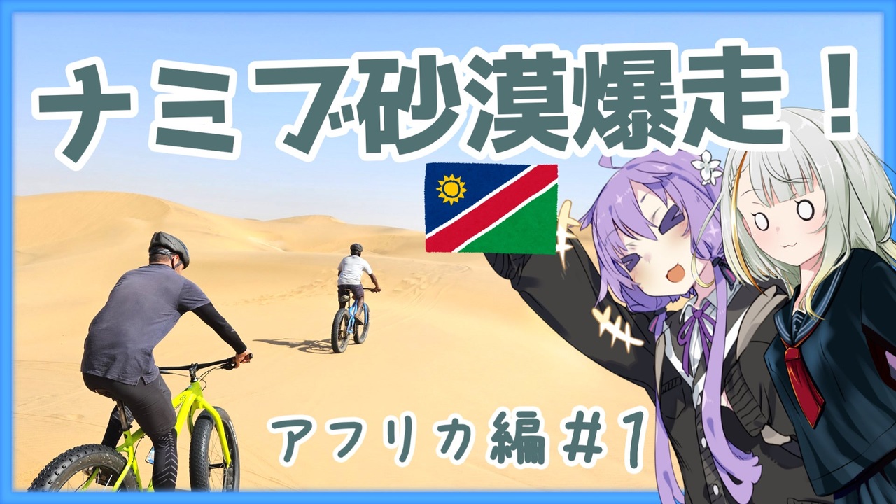 <span style="font-size: 24px;"><strong><i>ファットバイク楽しかった!</i></strong></span><br><br>★普段投稿している動画↓<br>・前回のカナダのナイアガラの滝:<a href="https://www.nicovideo.jp/watch/sm42816505" class="watch">sm42816505</a><br>・普段投稿しているロードバイク車載:<a href="https://www.nicovideo.jp/watch/sm42599251" class="watch">sm42599251</a><br>・ゆかりと紡乃世のドライブ動画:<a href="https://www.nicovideo.jp/watch/sm42681869" class="watch">sm42681869</a><br><br>★クレジット★<br>■編集ツール<br>ツール:ゆっくりムービーメーカー4<br><br>■音声合成ソフト<br>A.I.VOICE 結月ゆかり<br>A.I.VOICE 紡乃世詞音<br><br>■立ち絵<br>結月ゆかり かれい様<<a href="https://seiga.nicovideo.jp/seiga/im6232152>" target="_blank" rel="noopener nofollow">https://seiga.nicovideo.jp/seiga/im6232152></a><br>紡乃世詞音 ぴぴ様<<a href="https://sp.seiga.nicovideo.jp/seiga/#!/im11059365>" target="_blank" rel="noopener nofollow">https://sp.seiga.nicovideo.jp/seiga/#!/im11059365></a><br><br>■お借りしたもの&参考<br>・Google Earth様<br>・Wikipedia様<br>・各種ナミビア観光のウェブサイト<br>・♪遠くの景色 <a href="https://bgmer.net/music/294" target="_blank" rel="noopener nofollow">https://bgmer.net/music/294</a><br>・♪アンゴラ達の踊り <a href="https://dova-s.jp/bgm/play12170.html" target="_blank" rel="noopener nofollow">https://dova-s.jp/bgm/play12170.html</a><br><br>■Special thanks<br>素材をお借りしたニコニコモンズの皆様<br><a href="https://commons.nicovideo.jp/works/nc266508" target="_blank" rel="noopener">nc266508</a><br><a href="https://commons.nicovideo.jp/works/nc277904" target="_blank" rel="noopener">nc277904</a><br><a href="https://commons.nicovideo.jp/works/nc284092" target="_blank" rel="noopener">nc284092</a><br><a href="https://commons.nicovideo.jp/works/nc277067" target="_blank" rel="noopener">nc277067</a><br><a href="https://commons.nicovideo.jp/works/nc242377" target="_blank" rel="noopener">nc242377</a><br><a href="https://commons.nicovideo.jp/works/nc236011" target="_blank" rel="noopener">nc236011</a><br>