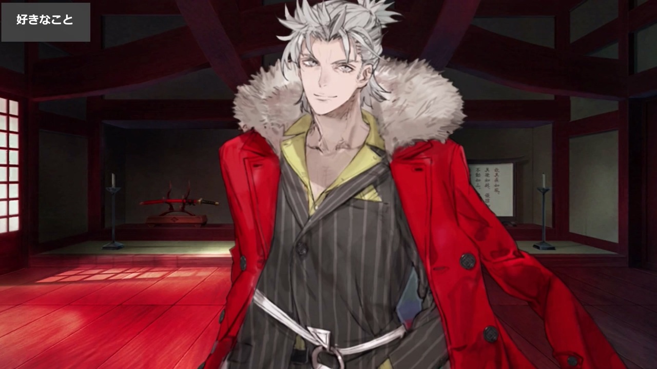 武田晴信(武田信玄)(CV:梅原裕一郎)の召喚・マイルーム会話・霊基再臨・バトル・イベントのボイスまとめ+プロフィールです。<br>第1・2段階で一部のバトルボイスのみ変化し、第3段階で全ボイスが変化します。<br><br>おまけで長尾景虎(CV:水樹奈々)からの特殊会話とイベントページのボイスを収録しています。<br><br>長すぎて画質が落ちるので分割投稿です。第3段階とプロフィールは<a href="https://www.nicovideo.jp/watch/sm43091333" class="watch">sm43091333</a><br><br>【チャプター】<br><a href="#" class="seekTime" data-seekTime="00:00" onclick="seekNicoPlayer('#00:00'); return false;">#00:00</a> 召喚<br><a href="#" class="seekTime" data-seekTime="00:30" onclick="seekNicoPlayer('#00:30'); return false;">#00:30</a> マイルームボイス<br><a href="#" class="seekTime" data-seekTime="09:15" onclick="seekNicoPlayer('#09:15'); return false;">#09:15</a> 特殊会話<br><a href="#" class="seekTime" data-seekTime="09:42" onclick="seekNicoPlayer('#09:42'); return false;">#09:42</a> 第1段階バトルボイス<br><a href="#" class="seekTime" data-seekTime="13:59" onclick="seekNicoPlayer('#13:59'); return false;">#13:59</a> レベルアップ+霊基再臨<br><a href="#" class="seekTime" data-seekTime="15:38" onclick="seekNicoPlayer('#15:38'); return false;">#15:38</a> 第2段階バトルボイス(変化分のみ)<br><a href="#" class="seekTime" data-seekTime="16:03" onclick="seekNicoPlayer('#16:03'); return false;">#16:03</a> イベントボイス<br><br>YouTube版はこちら<br><a href="https://www.youtube.com/watch?v=4y4-CmRbnuM" target="_blank" rel="noopener nofollow">https://www.youtube.com/watch?v=4y4-CmRbnuM</a><br><br>投稿済ボイス集→<a href="https://www.nicovideo.jp/mylist/57873980" target="_blank" rel="noopener">mylist/57873980</a>、<a href="https://www.nicovideo.jp/mylist/68037946" target="_blank" rel="noopener">mylist/68037946</a><br>