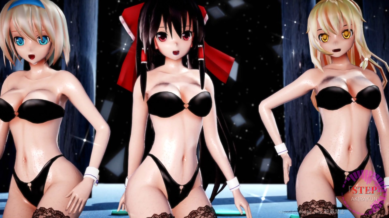 3人に踊ってもらいました。<br>現在、作成リクエストは受け付けていません。<br><br><br>【原曲】:「STEP」:niconico使用許諾曲<br><br>【モーション・カメラ】:00 00様<br><a href="https://www.youtube.com/watch?v=S4TmSWV-ux4&feature=youtu.be" target="_blank" rel="noopener nofollow">https://www.youtube.com/watch?v=S4TmSWV-ux4&feature=youtu.be</a><br>※カメラは改変しています<br><br><br>■ステージ<br>ライトとガラスステージ:63円様 <a href="https://seiga.nicovideo.jp/seiga/im11289492" target="_blank" rel="noopener">im11289492</a><br><br>■モデル<br>霊夢、魔理沙、アリス:にがもん様、しえら様<br>・衣装:アールビット様<br><br>■エフェクト<br>Ray-mmd-1.5.2:Rui様<br>初心者マテリアル:さらしな様<br>肌マテリアル:MARUSU様<br>AutoLuminous4:そぼろ様<br>空中に漂う埃:化身バレッタ様<br>ikBokeh_v018c:ikeno様<br><br><br>MikuMikuDance:樋口優様<br>MMEffect :舞力介入P様<br>PMDE、PmxE:極北P様<br>AviUtl :KENくん様<br>Ut Video Codec suite:ゆーむP様<br>上海アリス幻楽団・東方project(ZUN様)<br><br>ねむ様x2、Gutsないぜ様x3、アルマク 鮎様x4、cz500c様x3、都市伝説P様、しめじ様、黒兄貴様x5、ゆうろえーす様x10、うまおいおーい様x2、233様x4、ゲルド様x2、ゆうろえーす様、しめじ様、ゲルド様、enii様、広告ありがとうございます。(_ _)<br>アルマク 鮎様、ゆうろえーす様、多大な広告、@@・・・フキフキ(== )・・・チャッ@@オオッ、ありがとうございます。(_ _)<br><br>mylist ③<a href="https://www.nicovideo.jp/mylist/75586824" target="_blank" rel="noopener">mylist/75586824</a> ② <a href="https://www.nicovideo.jp/mylist/72970530" target="_blank" rel="noopener">mylist/72970530</a> ① <a href="https://www.nicovideo.jp/mylist/63690967" target="_blank" rel="noopener">mylist/63690967</a> 旧 <a href="https://www.nicovideo.jp/mylist/61238351" target="_blank" rel="noopener">mylist/61238351</a><br><br> ※動画の転載は禁止です。<br>Attention,Unauthorized reproduction prohibited!!