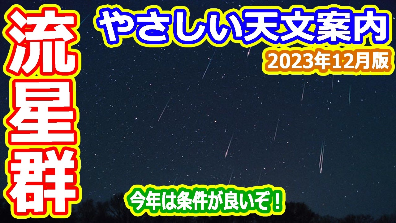 2023年ももうすぐ終わり<br>1年の締めくくりに、ふたご座流星群はいかがですか?<br>今回は条件が良く、絶好の観測日和です(天気が良ければ)<br>その他、天体の接近情報もありますよ<br>おすすめグッズは↓に<br><br>【欲しいものリスト】<br><a href="https://www.amazon.jp/hz/wishlist/ls/30HG3KS6HM6G?ref_=wl_share" target="_blank" rel="noopener nofollow">https://www.amazon.jp/hz/wishlist/ls/30HG3KS6HM6G?ref_=wl_share</a><br>【いちおし宇宙系】<br>・アマゾンリンク<br><a href="https://amzn.to/2S8xjpH" target="_blank" rel="noopener nofollow">https://amzn.to/2S8xjpH</a><br>・コールマン(Coleman) チェア インフィニティチェア<br><a href="https://amzn.to/3NEZsg4" target="_blank" rel="noopener nofollow">https://amzn.to/3NEZsg4</a><br>・ネックピロー 低反発 クッション 携帯枕<br><a href="https://amzn.to/3iWKqEq" target="_blank" rel="noopener nofollow">https://amzn.to/3iWKqEq</a><br>・ハクキンカイロ ハクキンウォーマー(別途ベンジンが必要です)<br><a href="https://amzn.to/3FgErWF" target="_blank" rel="noopener nofollow">https://amzn.to/3FgErWF</a><br>・ZIPPOハンディウォーマー (別途ZIPPOオイルが必要です)<br><a href="https://amzn.to/3gQVjdm" target="_blank" rel="noopener nofollow">https://amzn.to/3gQVjdm</a><br><br>公平性や中立性を考えてアフィリエイトリンクは控えていましたが、得た収益を次のレビュー書籍や機材代にするために始めました<br>よろしくお願いします<br><br>へえ~と思ったらチャンネル登録と高評価をお願います<br>ツイッターでは、たまに宇宙ネタをつぶやいています<br><br>◆チャンネル登録はこちら<br><a href="http://www.youtube.com/channel/UChOv-TZWg3X4MDjFUF8CfQg?sub_confirmation=1" target="_blank" rel="noopener nofollow">http://www.youtube.com/channel/UChOv-TZWg3X4MDjFUF8CfQg?sub_confirmation=1</a><br>◆サブチャンネル<br><a href="http://www.youtube.com/channel/UCpQEOLtOpmXUwslvgi93yQw?sub_confirmation=1" target="_blank" rel="noopener nofollow">http://www.youtube.com/channel/UCpQEOLtOpmXUwslvgi93yQw?sub_confirmation=1</a><br>◆twitterはこちら<br><a href="https://twitter.com/skysanpei" target="_blank" rel="noopener nofollow">https://twitter.com/skysanpei</a>