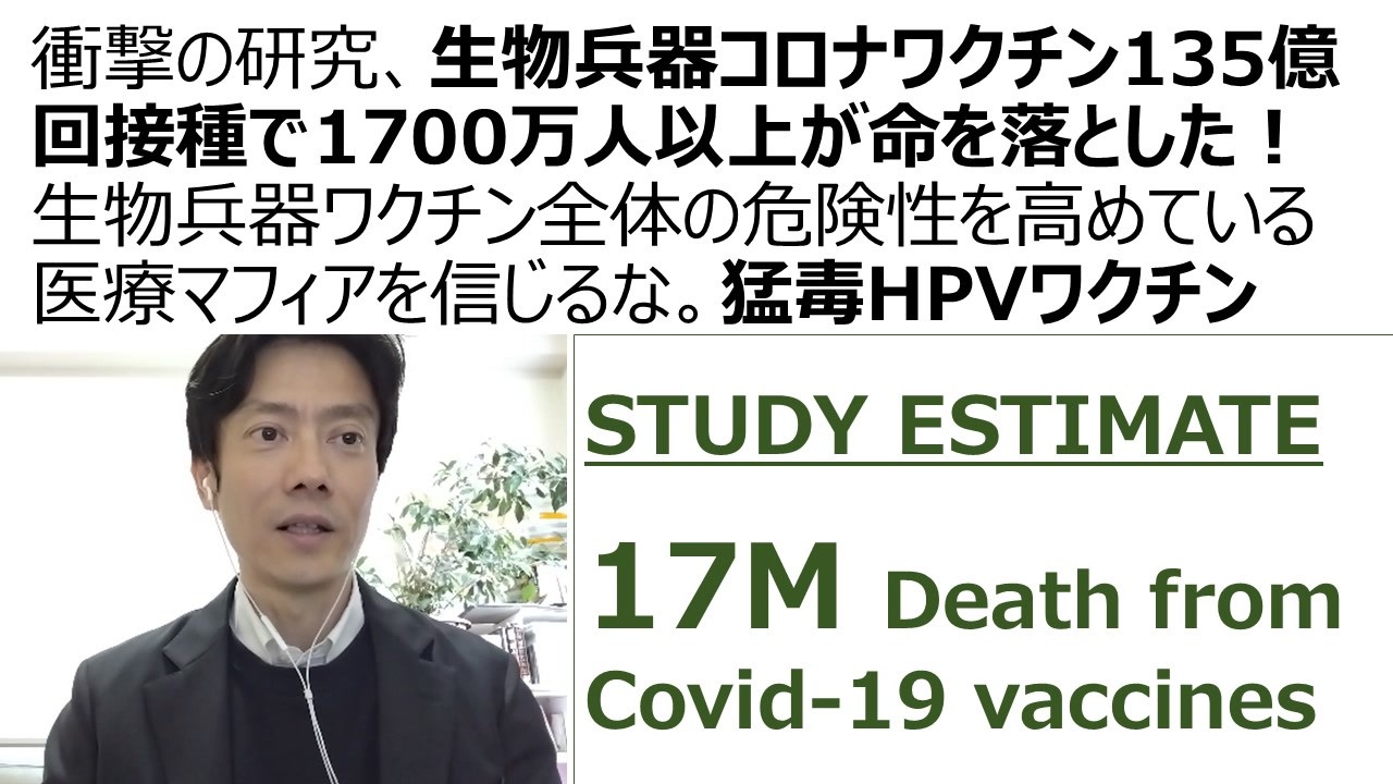 今日はツイッターでYouさんという方が紹介していらっしゃった、1700万人以上がワクチンで死んだと推定する<br> フロントラインヘルスという海外チャンネルの動画の紹介をしたいと思います。 <br><a href="https://www.facebook.com/100064652485126/videos/1023831618675173/" target="_blank" rel="noopener nofollow">https://www.facebook.com/100064652485126/videos/1023831618675173/</a><br><br>池田としえ先生 2023年12月1日日野市議会 その1<br><a href="https://twitter.com/toshie_fujisan/status/1730621471389806775" target="_blank" rel="noopener nofollow">https://twitter.com/toshie_fujisan/status/1730621471389806775</a><br><br>池田としえ先生 2023年12月1日日野市議会 その2<br><a href="https://twitter.com/toshie_fujisan/status/1730774142075703474" target="_blank" rel="noopener nofollow">https://twitter.com/toshie_fujisan/status/1730774142075703474</a><br><br>シルガード9の添付文書<br><a href="https://www.info.pmda.go.jp/go/pack/631341CG1023_1_06/" target="_blank" rel="noopener nofollow">https://www.info.pmda.go.jp/go/pack/631341CG1023_1_06/</a><br><br>その他のHPVワクチンの添付文書<br><a href="https://www.mhlw.go.jp/stf/shingi/2r9852000002c06s-att/2r9852000002c0e2.pdf" target="_blank" rel="noopener nofollow">https://www.mhlw.go.jp/stf/shingi/2r9852000002c06s-att/2r9852000002c0e2.pdf</a><br><br>各種数値やグラフはこちら↓<br><a href="https://ch.nicovideo.jp/sanada-nobuaki/blomaga/ar2153539" target="_blank" rel="noopener nofollow">https://ch.nicovideo.jp/sanada-nobuaki/blomaga/ar2153539</a><br><br>5. 効能又は効果に関連する注意<br>5.1 HPV6、11、16、18、31、33、45、52及び58型以外のHPV感染に起因する子宮頸癌又は<br> その前駆病変等の予防効果は確認されていない。<br>5.2 接種時に感染が成立しているHPVの排除及び既に生じているHPV関連の病変の進行予防効果は期待できない。<br>5.3 本剤の接種は定期的な子宮頸癌検診の代わりとなるものではない。本剤接種に加え、子宮頸癌検診の受診やHPVへの曝露、性感染症に対し注意することが重要である。<br>5.4 本剤の予防効果の持続期間は確立していない。<br><br>真田信秋 日本国独立宣言論 私は独立を宣言する! キンドル出版<br><a href="https://www.amazon.co.jp/dp/B0CT86DX9G/" target="_blank" rel="noopener nofollow">https://www.amazon.co.jp/dp/B0CT86DX9G/</a><br>