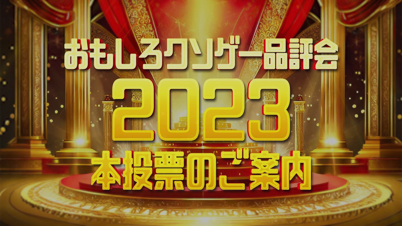<span style="font-size: 16px;"><strong>【おもしろクソゲー品評会2023】</strong></span><br>本投票のご案内です。<br><br>投票サイト<br><a href="https://forms.gle/76FhmTLz1hJCJKv47" target="_blank" rel="noopener nofollow">https://forms.gle/76FhmTLz1hJCJKv47</a><br>※12月14日の24時(日付が15日になったら)締め切り<br><br><br><br>《 支援&宣伝&応援してくださる方に感謝 m(_ _)m 》 <br><br><br><br>おもしろクソゲー品評会2022 → <a href="https://www.nicovideo.jp/watch/sm41591677" class="watch">sm41591677</a><br><br>おもしろクソゲー2023 → <a href="https://www.nicovideo.jp/mylist/74121126" target="_blank" rel="noopener">mylist/74121126</a><br>おもしろクソゲー品評会大賞作品 → <a href="https://www.nicovideo.jp/mylist/70550813" target="_blank" rel="noopener">mylist/70550813</a><br><br><br>◆Twitter◆<br><a href="https://twitter.com/cut_uma_3rd/" target="_blank" rel="noopener nofollow">https://twitter.com/cut_uma_3rd/</a><br><br>◆おもクソ活動支援◆<br><a href="https://cut-uma-3rd.fanbox.cc/" target="_blank" rel="noopener nofollow">https://cut-uma-3rd.fanbox.cc/</a><br>