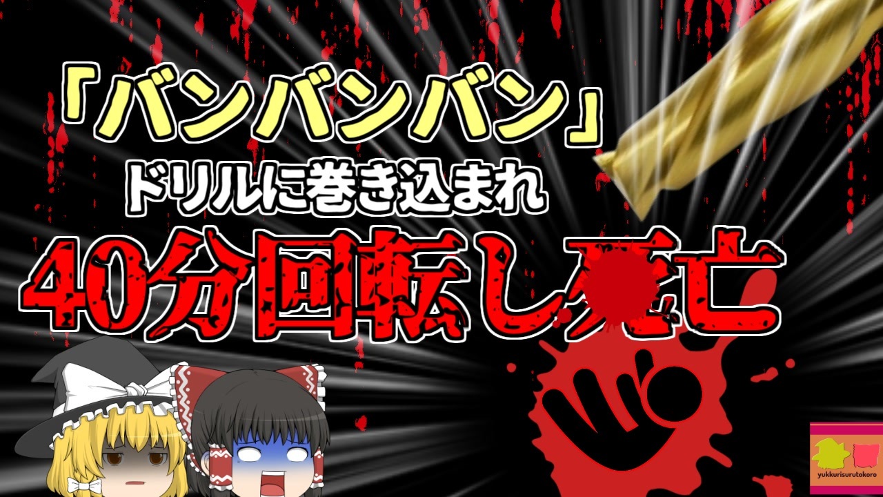 <a href="#" class="seekTime" data-seekTime="00:00" onclick="seekNicoPlayer('#00:00'); return false;">#00:00</a> 冒頭挨拶<br><a href="#" class="seekTime" data-seekTime="00:24" onclick="seekNicoPlayer('#00:24'); return false;">#00:24</a> 金属加工<br><a href="#" class="seekTime" data-seekTime="1:11" onclick="seekNicoPlayer('#1:11'); return false;">#1:11</a> 視聴上の注意<br><a href="#" class="seekTime" data-seekTime="1:53" onclick="seekNicoPlayer('#1:53'); return false;">#1:53</a> 本編開始<br><a href="#" class="seekTime" data-seekTime="2:29" onclick="seekNicoPlayer('#2:29'); return false;">#2:29</a> 「中ぐり」<br><a href="#" class="seekTime" data-seekTime="3:35" onclick="seekNicoPlayer('#3:35'); return false;">#3:35</a> 暖機運転<br><a href="#" class="seekTime" data-seekTime="4:07" onclick="seekNicoPlayer('#4:07'); return false;">#4:07</a> 奇妙な音<br><a href="#" class="seekTime" data-seekTime="5:32" onclick="seekNicoPlayer('#5:32'); return false;">#5:32</a> 原因の調査<br><a href="#" class="seekTime" data-seekTime="7:51" onclick="seekNicoPlayer('#7:51'); return false;">#7:51</a> 必要だった対策<br><br>今回紹介するのは、以前リクエストがありました、機械加工工場での事例の一つです。<br>わが国の本州、東北地方某所にあった、金属加工工場ではこの日、作業員男性の「Aさん」が作業前の見回りをしていました。<br>すると作業場の方から「バンバンバンバン」という、不思議な音が聞こえてきたため、不審に思ったAさんは、普段自分が使用している「中ぐり盤」という機械の方へと歩いていきました。<br>するとそこには、作業員男性「Bさん」が、中ぐり盤のドリルに巻き込まれ、身体全体が回転しているという、恐ろしい光景が目に入ってきました。<br>Aさんは慌てて機械を停止させましたが、Bさんは回転によって、勢いよく作業場の床に繰り返し体を叩きつけられており、腕や足、頭部を骨折しており、すでに絶命状態でした。<br>その後、警察や自治体の調査が行われましたが、Bさんは単独で被災していたとみられ、目撃者が一人もおらず、監視カメラなども設置されていなかったため、明確な原因は判明しなかったものの、彼は前日に、Aさんの代わりに暖機運転を行っており・・・<br><br><br />※この動画は過去の事件を知り、現在でも同じことが発生する危険性を再認識、関与しないように促すための動画であり、視聴者を扇動、動揺を誘うためのコンテンツではありません。<br><br>ご要望にお応えして、メンバーシップの開設を行いました。<br>下記URLからも登録可能ですので、ご興味がある方は是非ご参加ください。<br><a href="https://www.youtube.com/channel/UCcT5a1J7XJW7CLYI2RKl4pw/join" target="_blank" rel="noopener nofollow">https://www.youtube.com/channel/UCcT5a1J7XJW7CLYI2RKl4pw/join</a><br><br><br>Twitter<br>→<a href="https://twitter.com/yukkurisurutoko" target="_blank" rel="noopener nofollow">https://twitter.com/yukkurisurutoko</a><br><br>取り急ぎ、簡易的にですがマイリストを作りました。<br>【ゆっくり解説】事故・事件関係紹介リスト <br><a href="https://www.nicovideo.jp/mylist/71034319" target="_blank" rel="noopener nofollow">https://www.nicovideo.jp/mylist/71034319</a><br>【ゆっくり解説】放射線系事故<br><a href="https://www.nicovideo.jp/mylist/71034368" target="_blank" rel="noopener nofollow">https://www.nicovideo.jp/mylist/71034368</a><br>【ゆっくり解説】鉄道系事故・事件関連<br><a href="https://www.nicovideo.jp/mylist/71034379" target="_blank" rel="noopener nofollow">https://www.nicovideo.jp/mylist/71034379</a>