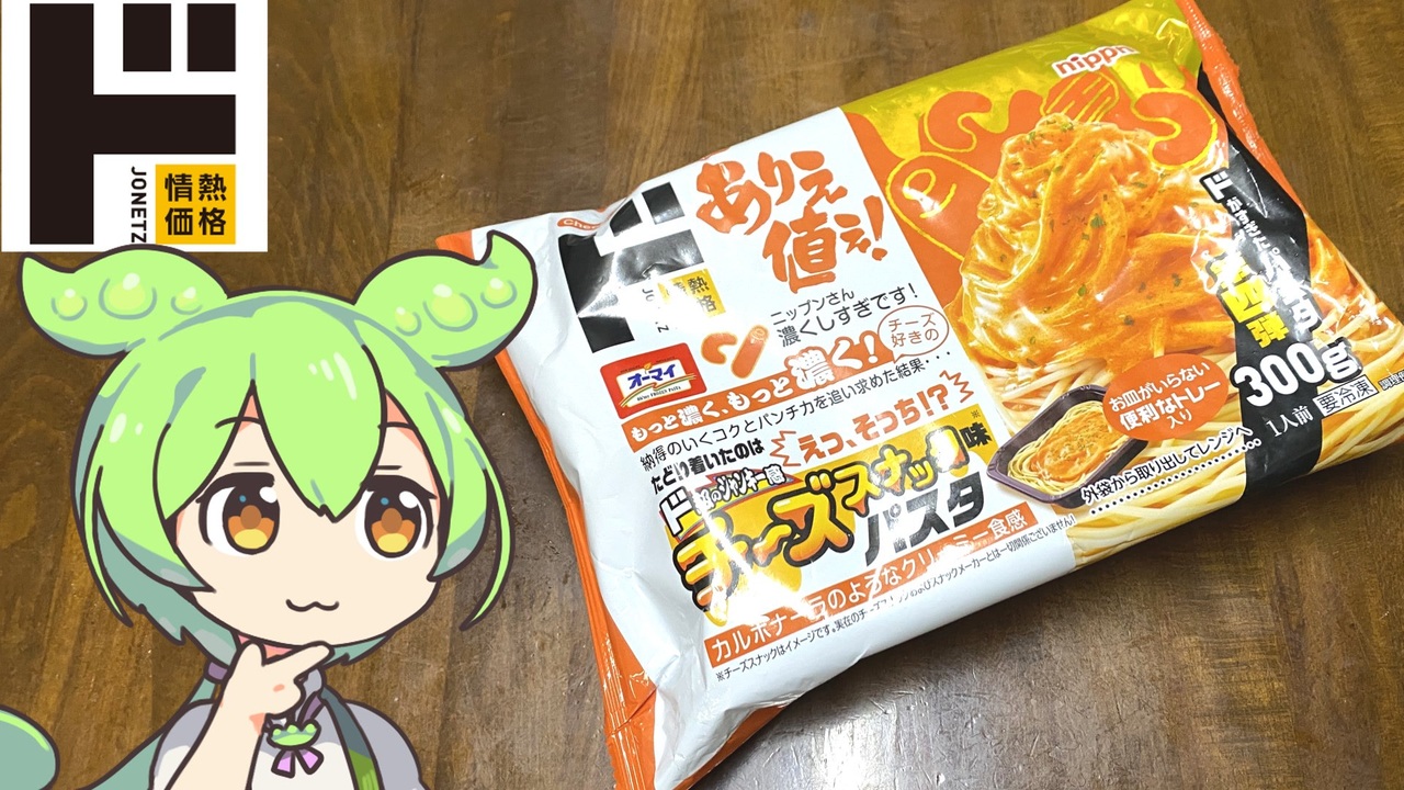 ニップンが作ったチーズスナック味のパスタです。<br><br><br>【関連動画】<br>ドン・キホーテの情熱価格「ドら焼き(69円)」<br><a href="https://www.nicovideo.jp/watch/sm43032428" target="_blank" rel="noopener nofollow">https://www.nicovideo.jp/watch/sm43032428</a><br><br><br>【参考】<br>株式会社ドン・キホーテ<br><a href="https://www.donki.com/" target="_blank" rel="noopener nofollow">https://www.donki.com/</a><br>オーマイ(ニップン)<br><a href="https://www.nippn.co.jp/BrandB/Ohmy/" target="_blank" rel="noopener nofollow">https://www.nippn.co.jp/BrandB/Ohmy/</a><br><br><br>【使用した素材】(※敬称略)<br>(合成音声)VOICEVOX/ずんだもん/四国めたん/春日部つむぎ<br><a href="https://voicevox.hiroshiba.jp/" target="_blank" rel="noopener nofollow">https://voicevox.hiroshiba.jp/</a><br>(立ち絵)坂本アヒル<br><a href="https://seiga.nicovideo.jp/seiga/im10788496" target="_blank" rel="noopener">im10788496</a>/<a href="https://seiga.nicovideo.jp/seiga/im10791276" target="_blank" rel="noopener">im10791276</a><br>(楽曲)甘茶の音楽工房/「楽しい麦畑」「フルーツパフェ」「お城の舞踏会」<br><a href="https://amachamusic.chagasi.com/" target="_blank" rel="noopener nofollow">https://amachamusic.chagasi.com/</a>