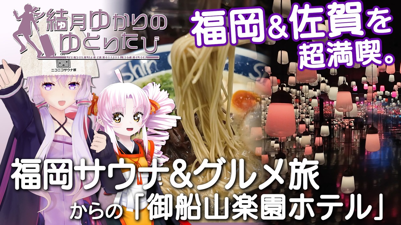<span style="color: #9900ff; font-size: 24px;">こんなときだから、豪遊しよう。</span><br>ベホイミの無計画で気楽な一人旅の様子を観察する<strong>「MMD旅行バラエティ」第8回。</strong><br>福岡のサウナ&グルメを堪能し、全サウナー憧れの宿<strong>「御船山楽園ホテル」</strong>でととのってきました。<br>ちなみに新機材<strong>「Osmo Pocket 3」</strong>の導入により画質がパワーアップしました。<br><span style="color: #ff00ff;">「いいね!」には、今回の旅で大好物になった料理を書いておきました。</span><br><br><span style="color: #0000ff;"><strong><結月ゆかりのゆとりたび</strong></span><span style="color: #0000ff;"><a href="https://www.nicovideo.jp/mylist/71080293" target="_blank" rel="noopener">mylist/71080293</a></span><span style="color: #0000ff;"><strong>></strong></span><br>前→札幌&小樽をひとりたび。(サウナ巡りの片手間に)「北国グルメツアー」<a href="https://www.nicovideo.jp/watch/sm42119459" class="watch">sm42119459</a><br><span style="color: #ff0000; font-size: 16px;">新作(2024.3.7)→日本酒に溺れたい。<br>長野旅前編(松本編)「タビシロサウナ」&「厨十兵衛」</span><span style="font-size: 16px;"><a href="https://www.nicovideo.jp/watch/sm43481632" class="watch">sm43481632</a></span><br><span style="color: #0000ff;"><strong>短編旅行動画「まちあるき」シリーズもよろしく!</strong></span><span style="color: #0000ff;">→<a href="https://www.nicovideo.jp/mylist/75790185" target="_blank" rel="noopener">mylist/75790185</a></span><br><br><strong>制作:ベホイミProject(<a href="https://www.nicovideo.jp/mylist/27336" target="_blank" rel="noopener">mylist/27336</a>)</strong><br>Twitter:<a href="https://twitter.com/BehoimiP" target="_blank" rel="noopener nofollow">https://twitter.com/BehoimiP</a><br>YouTube「T.A.S魔理沙ちゃんねる」:<a href="https://www.youtube.com/c/TasMarisa" target="_blank" rel="noopener nofollow">https://www.youtube.com/c/TasMarisa</a><br>サウナイキタイ:<a href="https://sauna-ikitai.com/saunners/19899" target="_blank" rel="noopener nofollow">https://sauna-ikitai.com/saunners/19899</a>