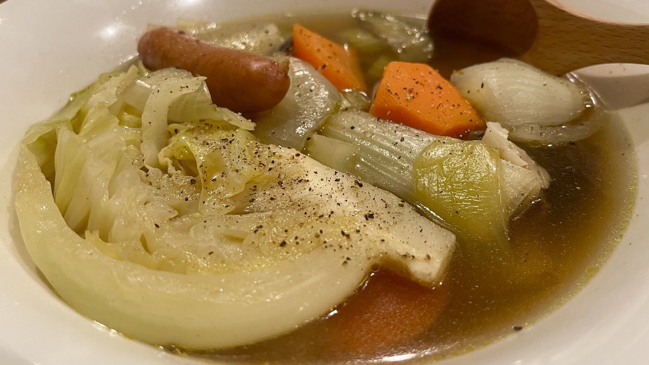 【材料】<br>・ニンジン 2本<br>・タマネギ 1個<br>・ニンニク 2片<br>・セロリ 1本<br>・ナス 1本<br>・新じゃが 4個<br>・長ネギ 1/2本<br>・キャベツ 1/4玉<br>・ホワイトマッシュルーム 4個<br>・シャウエッセン 2袋<br>・水 1,500ml<br>・塩 小さじ2<br>・ブラックペッパー 適量<br><br>■私のツイッチのアカウント<br>・生配信はコチラ<br><a href="https://www.twitch.tv/tokkun_game" target="_blank" rel="noopener nofollow">https://www.twitch.tv/tokkun_game</a><br><br>■BGM提供<br>・若林タカツグ様<br><a href="https://twitter.com/cocoa2448" target="_blank" rel="noopener nofollow">https://twitter.com/cocoa2448</a><br><br>■料理以外のサブチャンネルあります<br>・とっくんのサブチャンネル<br><a href="https://youtube.com/channel/UCsU6Xe6NyrTwid56M9nC9ww" target="_blank" rel="noopener nofollow">https://youtube.com/channel/UCsU6Xe6NyrTwid56M9nC9ww</a><br><br>■Twitterアカウントあります<br><a href="https://twitter.com/kuntotu" target="_blank" rel="noopener nofollow">https://twitter.com/kuntotu</a><br><br>■Instagramもあります<br><a href="https://www.instagram.com/kuntotu/" target="_blank" rel="noopener nofollow">https://www.instagram.com/kuntotu/</a><br><br>■ファンレター・プレゼントの宛先はこちら<br>〒150-0001<br>東京都渋谷区神宮前6-12-20 J6 Frontビル 6F<br>株式会社Carry On<br>「とっくん」宛<br>※ 冷蔵・冷凍が必要な、なま物の受付はできません。<br><br>■お仕事のご依頼等<br>tokkun26sai@gmail.com<br><br>■諸注意<br>・スパム等は自動的に弾かれてしまいます。www等の連続した単語等にもご注意ください。<br>・コメント欄に動画と関係の無い方のお名前を出すのはその方のご迷惑となってしまう場合がありますのでお控え下さい。<br>・他の方の動画でこのチャンネルの話題をコメントもお控え下さい。
