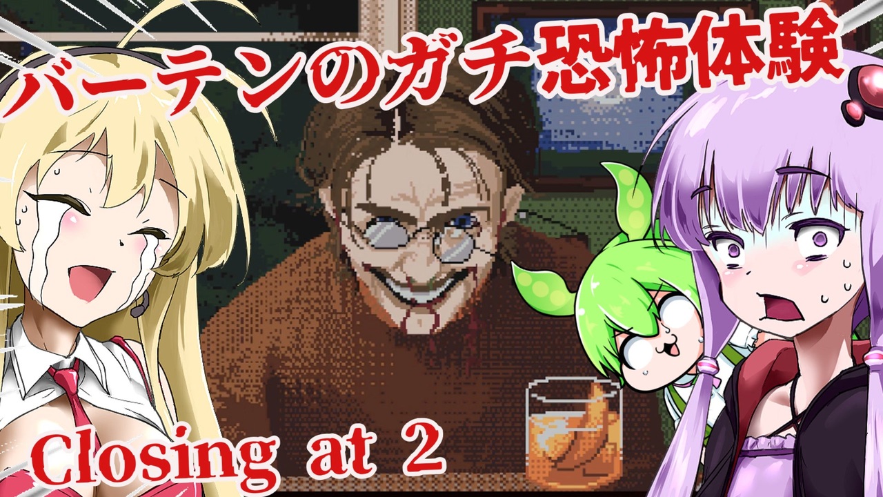 結月ゆかりさん、ずんだもん、弦巻マキちゃんが、海外のホラーゲームに挑むようです。<br><br>◎あらすじ◎<br>湖畔の宿でバーテンをしている主人公。<br>常連客にいつものように飲み物を作って提供していただけだったのに、<br>どうして恐ろしいことが起き始めるのか…?<br><br>※投稿者のガバ翻訳付きです。<br>配信ページ 日本語非対応<br><a href="https://natsrey.itch.io/closing-at-2" target="_blank" rel="noopener nofollow">https://natsrey.itch.io/closing-at-2</a><br><br>VOICEVOX:ずんだもん<br><a href="https://voicevox.hiroshiba.jp/" target="_blank" rel="noopener nofollow">https://voicevox.hiroshiba.jp/</a><br><br>COEIROINK:黒聡鵜月(ヘンリー)<br>COEIROINK:クロワちゃん(リサ)<br>COEIROINK:おふとんP(マーカス)<br>COEIROINK:AI声優-青葉(ナレーション)<br><a href="https://coeiroink.com/" target="_blank" rel="noopener nofollow">https://coeiroink.com/</a><br><br>BGMをお借りしました。<br><a href="https://otologic.jp/" target="_blank" rel="noopener nofollow">https://otologic.jp/</a><br><br><a target="_blank" href="https://qa.nicovideo.jp/faq/show/19424?site_domain=default" style="font-size: 13px;color: #657586; text-decoration: underline; line-height: 1.4">この動画は投稿者によって修正されました</a>