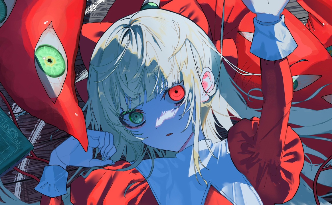 はじめましてるりあと申します。4作目です。<br><br>サブスク配信▷ <a href="https://linkco.re/uypdEnVa?select=listen" target="_blank" rel="noopener nofollow">https://linkco.re/uypdEnVa?select=listen</a><br><br>NEXTBATTERS <br>1stコンピレーションアルバム<br>『Katheocrazy』収録曲<br><br>[credit](敬称略)<br>Vocal 重音テト,初音ミク<br>music Ruliea <a href="https://x.com/ruliea_7?s=21" target="_blank" rel="noopener nofollow">https://x.com/ruliea_7?s=21</a><br>illustration しうん <a href="https://x.com/siun_5513?s=21" target="_blank" rel="noopener nofollow">https://x.com/siun_5513?s=21</a><br>Movie 槲 <a href="https://x.com/kasiwa_7463?s=21" target="_blank" rel="noopener nofollow">https://x.com/kasiwa_7463?s=21</a><br>guitar shikisai <a href="https://x.com/sshikisai?s=21" target="_blank" rel="noopener nofollow">https://x.com/sshikisai?s=21</a><br>bass 夕 <a href="https://x.com/act_xx?s=21" target="_blank" rel="noopener nofollow">https://x.com/act_xx?s=21</a><br><br>YouTube<br>▷ <a href="https://www.youtube.com/watch?v=ZmMfADJ7DFg" target="_blank" rel="noopener nofollow">https://www.youtube.com/watch?v=ZmMfADJ7DFg</a><br><br>offvocal等素材<br>▷ <a href="https://drive.google.com/drive/folders/1Q1Hv1jdAKtJ80hOpcwc9ozZ6yH6YHwV8?usp=drive_link" target="_blank" rel="noopener nofollow">https://drive.google.com/drive/folders/1Q1Hv1jdAKtJ80hOpcwc9ozZ6yH6YHwV8?usp=drive_link</a><br><br>鼓動が連なって焦燥<br>冷えた汗は背中を凍りつかせて、<br>刻々と、酷々と。嫌。厭!<br><br>虚空を空振って残像<br>煮えた心の臓だけが熱を帯びている。<br>どうかボクを助け出してくれ。暮。<br><br>不気味に蝕まれていく。<br><br>奪わないで!<br>秒読みの息継ぎを。<br>魘された幻と冷え切ったこの肌<br>刺された針の数が、<br>増えていく藍の視線が──<br>誘われた常世<br>ボクはここで朽ち果てたダンサー?<br><br>吐いてなんて幻想<br>安価な救い求める瞑想<br>狂った哀が行き場無くす退路<br>“最期は一度きり”<br><br>どうか──<br>満たされない鼓動が灯ってまた消える。<br>刻々と、刻々と。嫌。厭。<br><br>胸の奥で渦巻いている殺した感情を、翳して!<br><br>奪わないで!<br>消えかけたサイレンが、<br>朱に染まりきったこのドレスを締め上げる。<br>分からないの!視界が<br>触れられないの!全てが──<br>溺れたボクにはもうカラダは構いやしない。<br>直ちに応答せよ<br>僅か残った激情燃やして!