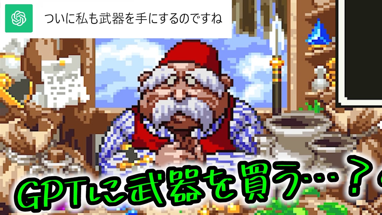 <br><strong>なんでこんな事に…!?</strong><br><br><span style="color: #ff0000;">~基本ルール~-</span><br>①GPTは勇者を殺す為の行動を取る<br>②GPTは魔法使いのキャラとして作成し、その操作は<br>この全ルールを把握したchatGPTに都度聞いて任せる。<br>③GPTはわざと自殺・MP回復拒否するような行動は取れない<br>④GPTはパーティの1番前か1番後ろに配置させる<br>⑤GPTの持ち物や呪文はGPTの意思でしか移動・使用できない<br>⑥買い物時は全てプレイヤーの自由にできる<br>⑦リセットや、データを消去して1からやり直しても良い<br>⑧経験値を伴わない裏での金稼ぎ作業時のみルール全て例外とする<br><br><span style="color: #0000ff;">~禁じ手~</span><br>①操作キャラでGPTに危害を加える行為(危害=ダメージや悪い状態異常など)<br>※メダパニで混乱したせいで殴る、などは許される<br>②戦闘中にGPTが死んだ際に放置(その次のターン中に蘇生させなければいけない)<br>③戦闘開始or終了時にGPTが死んでいる<br>④GPTのMPが0か1の時にHP回復の選択(蘇生も)を<br>GPT以外のメンバーに対して取る ※宿屋系はOK<br>⑤GPT以外の仲間がマホカンタ状態になる<br>⑥GPTがいない状態で戦闘を開始or続けるor勝利(バシルーラ等でいなくなったら逃げる行動のみ可)<br>⑦商人の特技「あなほり」を使うこと <br>⑧しあわせのくつの使用<br>⑨盗賊が盗んだ道具の使用<br><br><span style="color: #38761d;">勇者が死ぬ or 上記を破る度にGPTに強制リセット。「リセット」をする度にGPTに1pt。<br>50pt貯まったらGPTの勝ち。企画終了。</span><br><br><strong>【次】 下のシリーズから飛んでね<br>【part1】 <a href="https://www.nicovideo.jp/watch/sm42595666" class="watch">sm42595666</a> 【投稿動画まとめ】 <a href="https://www.nicovideo.jp/mylist/32090282" target="_blank" rel="noopener">mylist/32090282</a></strong><br><br><span style="color: red;"><strong>▼投稿者情報▼</strong></span><br>【 Twitter 】 <a href="https://twitter.com/wakou2525" target="_blank" rel="noopener nofollow">https://twitter.com/wakou2525</a><br>【生放送コミュ】 co1668349<br>【意見・連絡先】 wakou2525otayori@yahoo.co.jp
