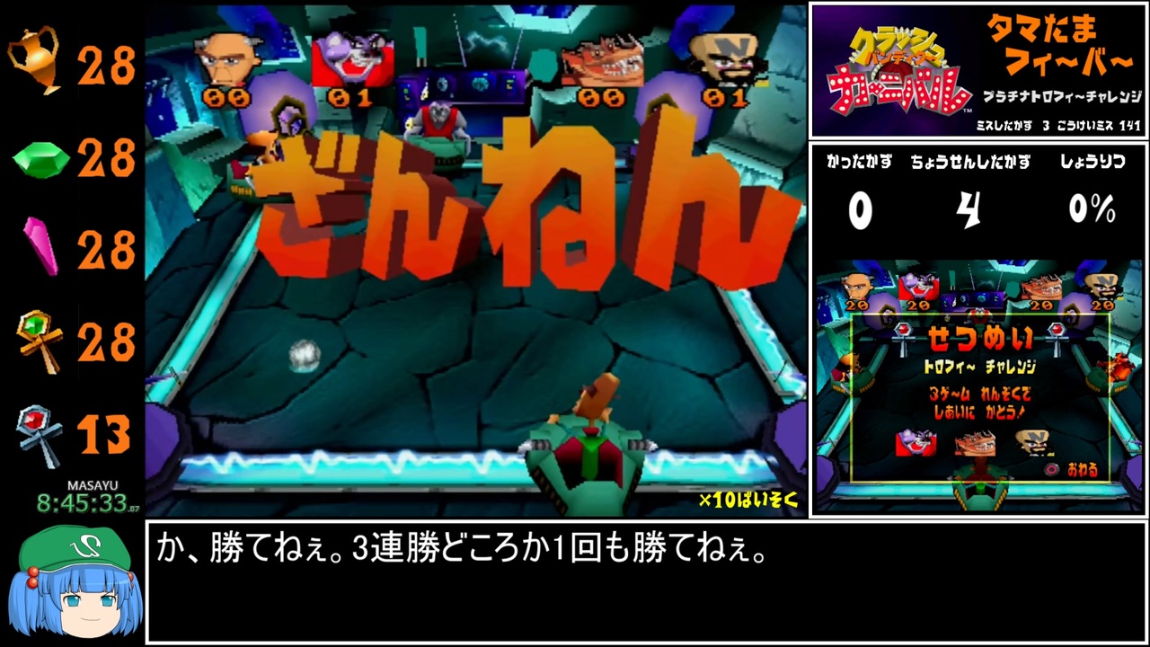 ざwんwねwんwじwゃwのwうwww<br>ワープルーム4のプラチナトロフィー集めまで<br><br>前→<a href="https://www.nicovideo.jp/watch/sm43122371" class="watch">sm43122371</a><br>次→<a href="https://www.nicovideo.jp/watch/sm43178484" class="watch">sm43178484</a><br>投稿動画→<a href="https://www.nicovideo.jp/mylist/44129502" target="_blank" rel="noopener">mylist/44129502</a><br><br>無編集→<a href="https://youtu.be/T7BGGqpJA-0?si=58Ab-_PdQYJmJh0A" target="_blank" rel="noopener nofollow">https://youtu.be/T7BGGqpJA-0?si=58Ab-_PdQYJmJh0A</a><br><br>Part1→<a href="https://www.nicovideo.jp/watch/sm42854258" class="watch">sm42854258</a><br>マルチバース→<a href="https://www.nicovideo.jp/watch/sm39988167" class="watch">sm39988167</a><br><br>使用機種「PS2」<br>レギュレーション<br>・操作可能になってから~5つのアイテムを28個集めるまで<br>・バグ技禁止<br><br>X→<a href="https://twitter.com/masayu_345" target="_blank" rel="noopener nofollow">https://twitter.com/masayu_345</a><br><br><a target="_blank" href="https://qa.nicovideo.jp/faq/show/19424?site_domain=default" style="font-size: 13px;color: #657586; text-decoration: underline; line-height: 1.4">この動画は投稿者によって修正されました</a>