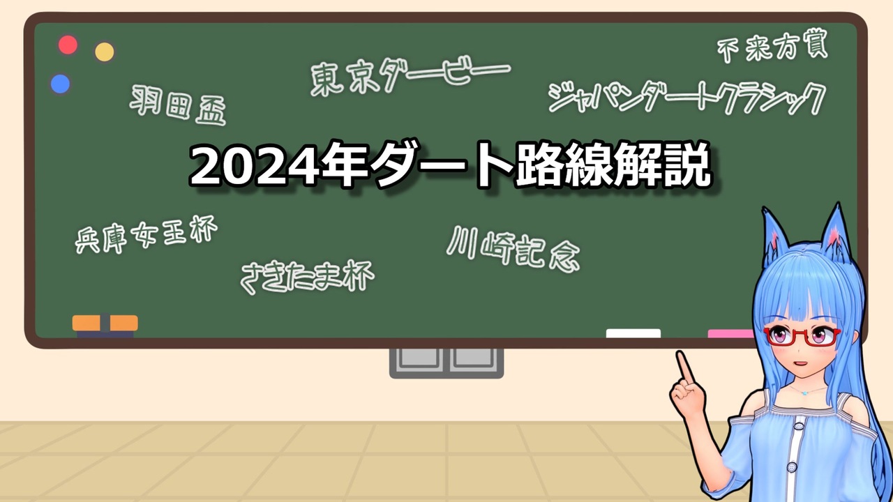 ご視聴ありがとうございます<br>2024年から開催されるダート三冠と変更がある重賞について解説します<br><br>【参考資料】<br>地方競馬全国協会(NAR)公式のダート重賞ページ<br><a href="https://www.keiba.go.jp/dirtgraderace/newroad/" target="_blank" rel="noopener nofollow">https://www.keiba.go.jp/dirtgraderace/newroad/</a><br>JRAダート路線のページ<br><a href="https://jra.jp/news/202211/112802.html" target="_blank" rel="noopener nofollow">https://jra.jp/news/202211/112802.html</a><br><br><br>前回:JRA GⅠの歴史解説 補足動画:<a href="https://www.nicovideo.jp/watch/sm43040320" class="watch">sm43040320</a><br>次回:年明けにリーディングの話でも<br>競馬解説動画マイリスト:<a href="https://www.nicovideo.jp/mylist/71482582" target="_blank" rel="noopener">mylist/71482582</a><br><br>BGM:<br>MusMus様<br><a href="https://musmus.main.jp/" target="_blank" rel="noopener nofollow">https://musmus.main.jp/</a><br><br>【競馬関係動画】<br>牧場見学シリーズ:<a href="https://www.nicovideo.jp/mylist/74947383" target="_blank" rel="noopener">mylist/74947383</a><br>解説動画シリーズ:<a href="https://www.nicovideo.jp/mylist/71482582" target="_blank" rel="noopener">mylist/71482582</a><br><br>【他のシリーズ】<br>ウイポの縛りプレイしていました<br>マイリスト:<a href="https://www.nicovideo.jp/mylist/69657788" target="_blank" rel="noopener">mylist/69657788</a><br><br>他にツーリング動画も上げています<br>ツーリング動画マイリスト:<a href="https://www.nicovideo.jp/mylist/72211996" target="_blank" rel="noopener">mylist/72211996</a><br><br>X(ツイッター)<br><a href="https://twitter.com/MGixxer150" target="_blank" rel="noopener nofollow">https://twitter.com/MGixxer150</a>