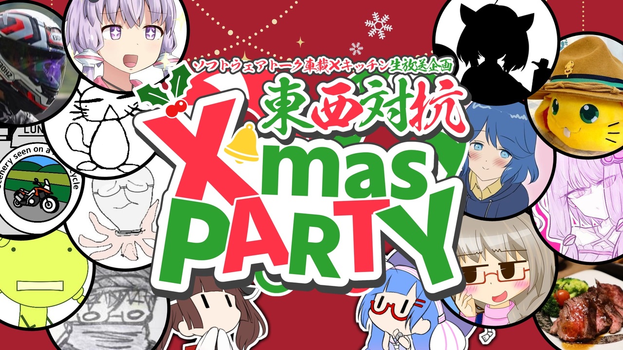 ソフトウェアトーク車載×キッチン生放送企画東西対抗X’masPARTYの生放送開催場所<br><br><span style="font-size: 24px;">東:nanaryさんの生放送コミュニティco5390333<br>生放送開催場所<a href="https://live.nicovideo.jp/watch/lv343754329" target="_blank" rel="noopener">lv343754329</a><br><br>西:横沢さわらさんの生放送コミュニティco5030229<br>生放送開催場所<a href="https://live.nicovideo.jp/watch/lv343785545" target="_blank" rel="noopener">lv343785545</a><br>さわらさんによる生放送告知動画<a href="https://www.nicovideo.jp/watch/sm43157327" class="watch">sm43157327</a></span><br><br>半分冗談ぐらいの気持ちで人集めたら思った以上に集まってしまって困惑している徒然スタッフ一同なのであった。生放送に関してはどちらも16時頃から始める予定です。<br><br>スタッフのSNS<br>Twitter(現X)<a href="https://twitter.com/yamagamirisuko" target="_blank" rel="noopener nofollow">https://twitter.com/yamagamirisuko</a>