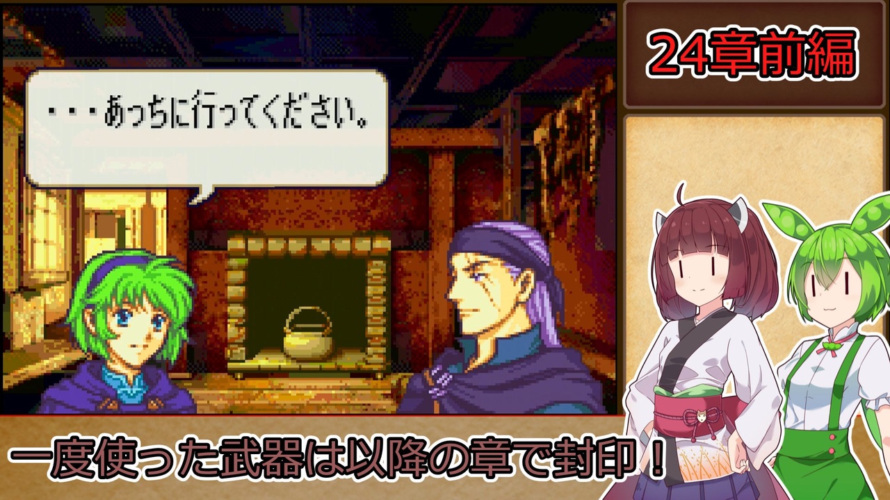 <span style="color: #85200c; font-size: 24px;"><strong><i>イベントが多かったので前後編に分けました。</i></strong></span><br><br><strong>ルール1:一度使用した武器種は、以降の章で使用する事を禁止する。<br>ルール2:武器の使用の定義は『その武器を装備した状態で敵との戦闘が発生したタイミング』『その武器を売却して換金した場合』杖の場合は『対象に対して使用した時点(命中の可否は問わない)』とする。</strong><br><span style="color: #ff0000;"><strong>※同盟軍、演出による戦闘イベントでは使用した判定にはならないこととする。</strong></span><br><strong>ルール3:難易度はリン編ハード→ヘクトル編ハードとする。<br>ルール4:序章から終章まで外伝、異伝を含む全ての章を攻略し、仲間に出来るユニットは全員加入させ、生存させる。(序章と1章のみ同一の章として扱う)</strong><br><span style="color: #ff0000; font-size: 18px;"><strong>※バグ技禁止</strong></span><br><br>本動画のシリーズリスト【<a href="https://www.nicovideo.jp/series/406473" target="_blank" rel="noopener">series/406473</a>】<br>前作の同縛りプレイ【<a href="https://www.nicovideo.jp/series/316824" target="_blank" rel="noopener">series/316824</a>】<br>前:【<a href="https://www.nicovideo.jp/watch/sm43130317" class="watch">sm43130317</a>】次:【<a href="https://www.nicovideo.jp/watch/sm43186021" class="watch">sm43186021</a>】<br><br><strong>使用したソフト</strong><br>VOICEROID+東北きりたんEX<br>VOICEPEAK 東北きりたん<br>VOICEPEAK ずんだもん<br><strong>お借りした素材</strong><br>ニコニコモンズの皆様(コンテンツツリー参照)