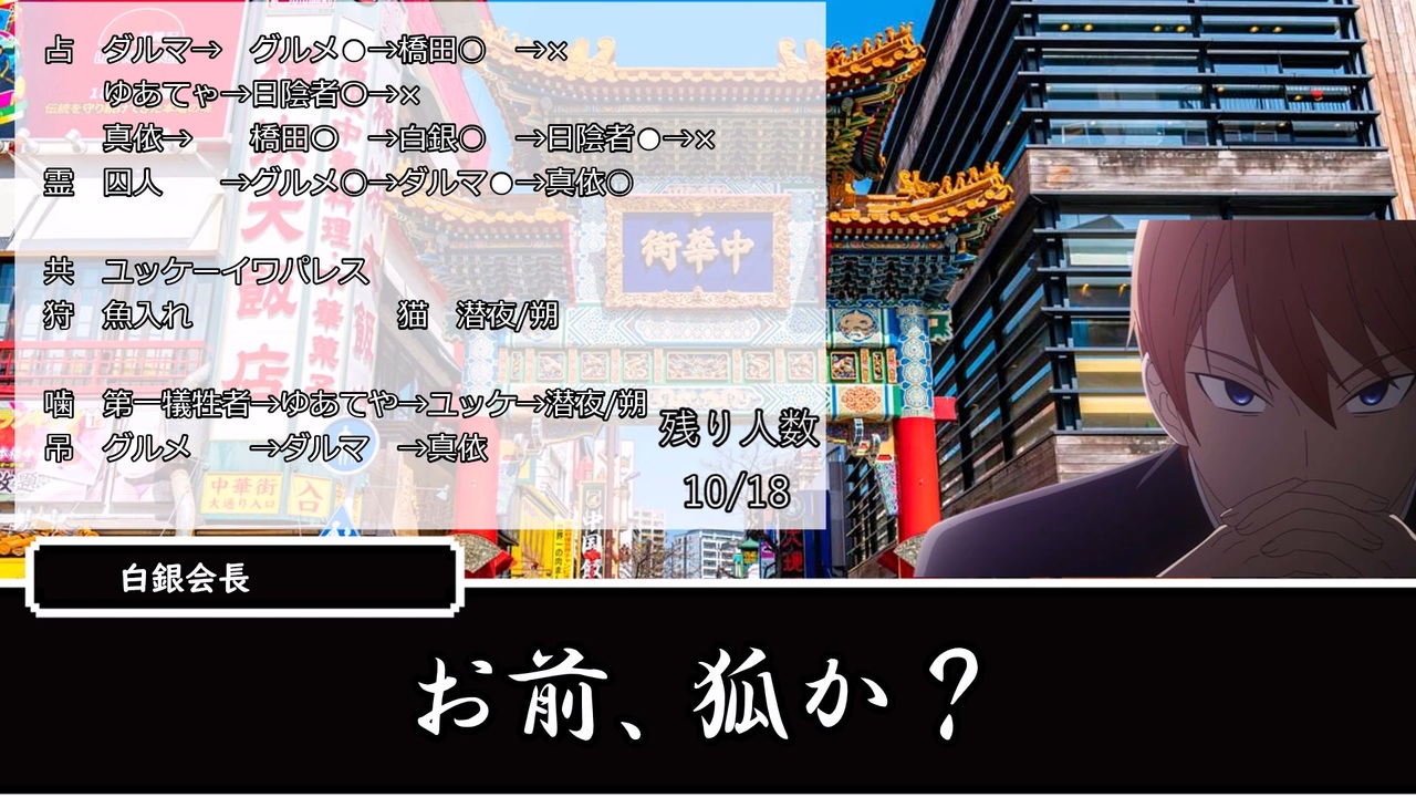 <span style="font-size: 18px;"><strong>き、気づいたら手が勝手にいいいいぃぃぃぃぃぃィィィィィィィ!?</strong></span><br><br>リスペクト先→全ての人狼動画制作者様<br><br>潜夜の呼び方欄<br>橋田→はっしー 鳥籠→れいれい キング嬢→お嬢 朔→さっくん 日陰者→こーくん 真依→まいっち 白銀会長→かいちょー<br><br><br>※この村は7割実卓・3割主の脳内議論を参考にしています。キャラへの指摘は可能ですが行き過ぎた暴言、罵倒は気をつけましょう。<br>また、一部キャラの発言速度を変えています<br><br /><br><br><br><a href="https://twitter.com/Currybreadkueyo" target="_blank" rel="noopener nofollow">https://twitter.com/Currybreadkueyo</a><br><a href="https://bsky.app/profile/currybreadkueyo.bsky.social" target="_blank" rel="noopener nofollow">https://bsky.app/profile/currybreadkueyo.bsky.social</a><br><br>感想は#だけの人狼シリーズで書いてくださると見つけやすくて嬉しいです。<br>アドバイスは適宜修正していきます<br>