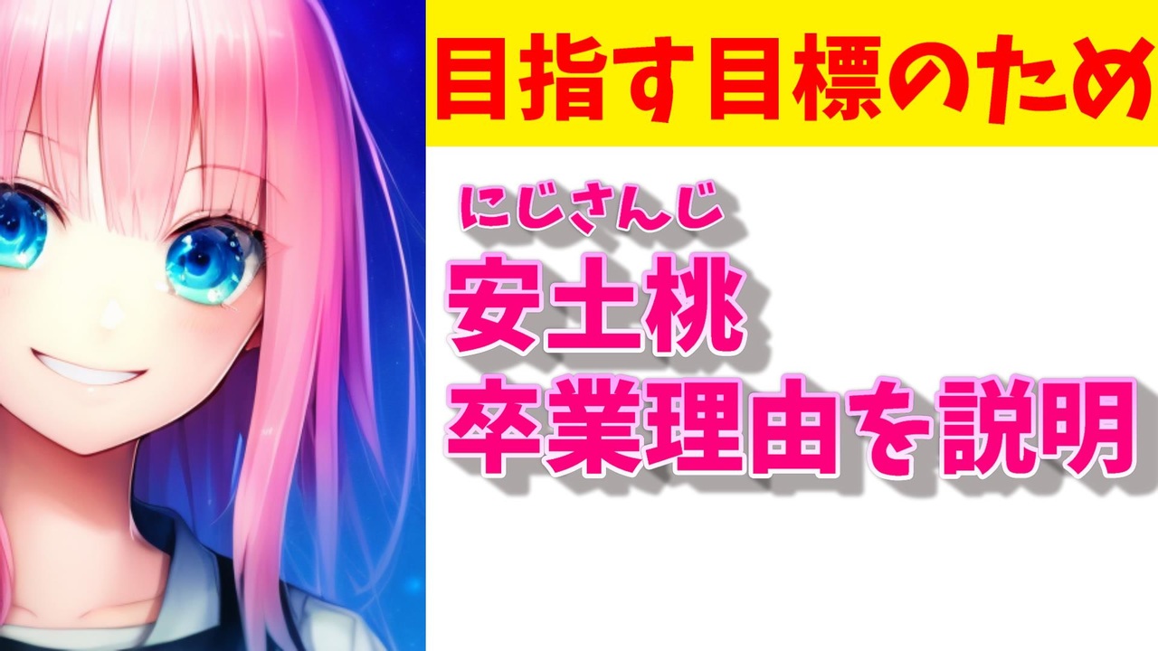 2023年12月20日、にじさんじを卒業する安土桃さんが自身のチャンネルにて卒業理由を説明されました。<br><br>引用<br>卒業に関して理由や経緯など説明します<br><a href="https://www.youtube.com/live/NwA4k7vCYa0?si=re9tvtalqKGb667V" target="_blank" rel="noopener nofollow">https://www.youtube.com/live/NwA4k7vCYa0?si=re9tvtalqKGb667V</a><br><br>Youtube <a href="https://www.youtube.com/@V_Virgin_Mary" target="_blank" rel="noopener nofollow">https://www.youtube.com/@V_Virgin_Mary</a><br>twitter <a href="https://twitter.com/V_Virgin_Mary" target="_blank" rel="noopener nofollow">https://twitter.com/V_Virgin_Mary</a><br><br>使用素材<br>高品質なフリー動画素材 - Pixabay <a href="https://pixabay.com/ja/videos" target="_blank" rel="noopener nofollow">https://pixabay.com/ja/videos</a>