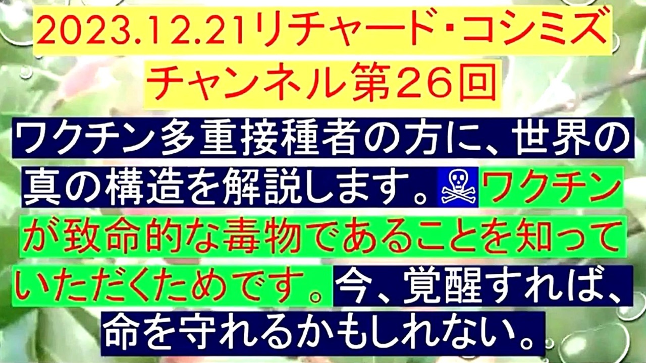 <span style="color: #ff0000;"><strong>「『 ワクチン多重接種者 』の方に、『 世界の真の構造 』を解説します。☠『 ワクチンが致命的な毒物で<br> ある 』ことを知っていただくためです。今、『 覚醒 』すれば、『 命を守れる 』かもしれない 」</strong></span><br><br><span style="color: #0000ff;"><strong>「『 イベルメクチン・アビガン・その他コロナ対策 』について、ご意見をお寄せ下さい! 」<br> ◐ E-mail:richardkoshimizu@gmail.com</strong></span><br><br><span style="color: #38761d;"><strong>◐ リチャード・コシミズ『 ニコニコ動画⦅ 全動画 ⦆』公式 動画ギャラリー</strong></span><br> <span style="color: #38761d;"><strong><a href="https://www.nicovideo.jp/user/121957117/video" target="_blank" rel="noopener nofollow">https://www.nicovideo.jp/user/121957117/video</a></strong></span><br> <br><span style="color: #38761d;"><strong>◐ リチャード・コシミズ『 ニコニコ動画⦅ 333 ~ ⦆』公式 動画ギャラリー</strong></span><br> <span style="color: #38761d;"><strong><a href="https://www.nicovideo.jp/user/121028600/video" target="_blank" rel="noopener nofollow">https://www.nicovideo.jp/user/121028600/video</a><br><br>◐ リチャード・コシミズ『 ニコニコ動画⦅ テーマ別 ⦆』公式 動画ギャラリー</strong></span><br> <span style="color: #38761d;"><strong><a href="https://www.nicovideo.jp/user/121192513/video" target="_blank" rel="noopener nofollow">https://www.nicovideo.jp/user/121192513/video</a><br><br>◐ リチャード・コシミズ 独立党『 ニコニコ動画 』公式 動画ギャラリー</strong></span><br> <span style="color: #38761d;"><strong><a href="https://www.nicovideo.jp/user/124351022/video" target="_blank" rel="noopener nofollow">https://www.nicovideo.jp/user/124351022/video</a><br><br>◐ リチャード・コシミズ『 Rumble 』公式 動画ギャラリー</strong></span><br> <span style="color: #38761d;"><strong><a href="https://rumble.com/user/richardkoshimizu" target="_blank" rel="noopener nofollow">https://rumble.com/user/richardkoshimizu</a></strong></span><br>