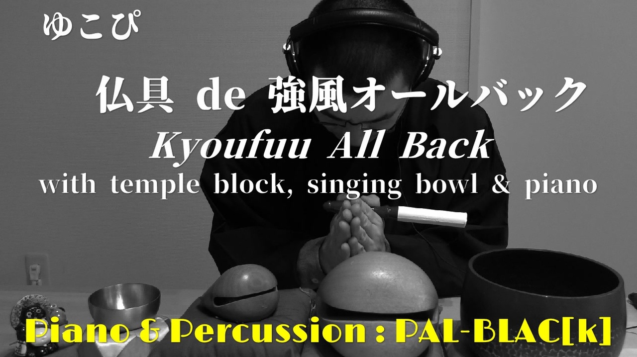 【仏具ピアノ】一人二役で強風オールバックを叩いたり弾いてみた【在家坊主頭】<br><br><br>カスタネットとトライアングルなんて自宅にない……。<br>そんなわけで、どこのご家庭にもある木魚とお鈴を鳴らしてみました。<br><br> <br>ゆこぴ 作詞作曲<br>Music, Words: Yukopi<br><br>《強風オールバック》<br>《Kyoufuu All Back (Powerful Wind, Slicked-back Hair)》<br><br><br><br>使用楽譜:電子楽譜カノン 「強風オールバック / ピアノソロ 中上級」<br><a href="https://www.canon-score.com/scores/6743" target="_blank" rel="noopener nofollow">https://www.canon-score.com/scores/6743</a><br>ピアノ譜:HIBIKI Music Supply<br>piano score:HIBIKI Music Supply <br><br><br>piano solo ver.<br>ピアノ・ソロ版:<a href="https://www.nicovideo.jp/watch/sm43130344" class="watch">sm43130344</a><br><br><br>演奏系総合: <a href="https://www.nicovideo.jp/mylist/18331638" target="_blank" rel="noopener">mylist/18331638</a><br>クラシック系マイリスト: <a href="https://www.nicovideo.jp/mylist/65665149" target="_blank" rel="noopener">mylist/65665149</a><br>ポピュラー、ジャズ、その他: <a href="https://www.nicovideo.jp/mylist/65665165" target="_blank" rel="noopener">mylist/65665165</a><br>