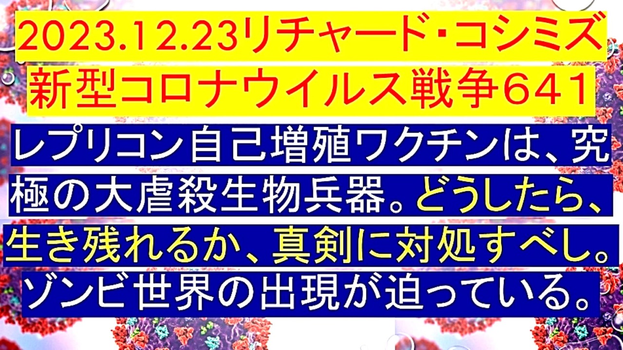 <span style="color: #cc4125;"><strong>「 テーマ : 新型コロナウイルス戦争 641 」</strong></span><br><br><span style="color: #ff0000;"><strong>「『 レプリコン自己増殖ワクチン 』は、『 究極の大虐殺生物兵器 』。『 どうしたら、生き残れるか 』、<br> 『 真剣に対処すべし 』。『 ゾンビ世界の出現が迫っている 』」</strong></span><br><br><span style="color: #0000ff;"><strong>「『 イベルメクチン・アビガン・その他コロナ対策 』について、ご意見をお寄せ下さい! 」<br> ◐ E-mail : richardkoshimizu@gmail.com</strong></span><br><br> <span style="color: #38761d;"><strong>◐ リチャード・コシミズ『 ニコニコ動画⦅ 全動画 ⦆』公式 動画ギャラリー</strong></span><br> <span style="color: #38761d;"><strong><a href="https://www.nicovideo.jp/user/121957117/video" target="_blank" rel="noopener nofollow">https://www.nicovideo.jp/user/121957117/video</a></strong></span><br><br> <span style="color: #38761d;"><strong>◐ リチャード・コシミズ『 ニコニコ動画⦅ 333 ~ ⦆』公式 動画ギャラリー</strong></span><br> <span style="color: #38761d;"><strong><a href="https://www.nicovideo.jp/user/121028600/video" target="_blank" rel="noopener nofollow">https://www.nicovideo.jp/user/121028600/video</a></strong></span><br><br> <span style="color: #38761d;"><strong>◐ リチャード・コシミズ『 ニコニコ動画⦅ テーマ別 ⦆』公式 動画ギャラリー</strong></span><br> <span style="color: #38761d;"><strong><a href="https://www.nicovideo.jp/user/121192513/video" target="_blank" rel="noopener nofollow">https://www.nicovideo.jp/user/121192513/video</a></strong></span><br><br>