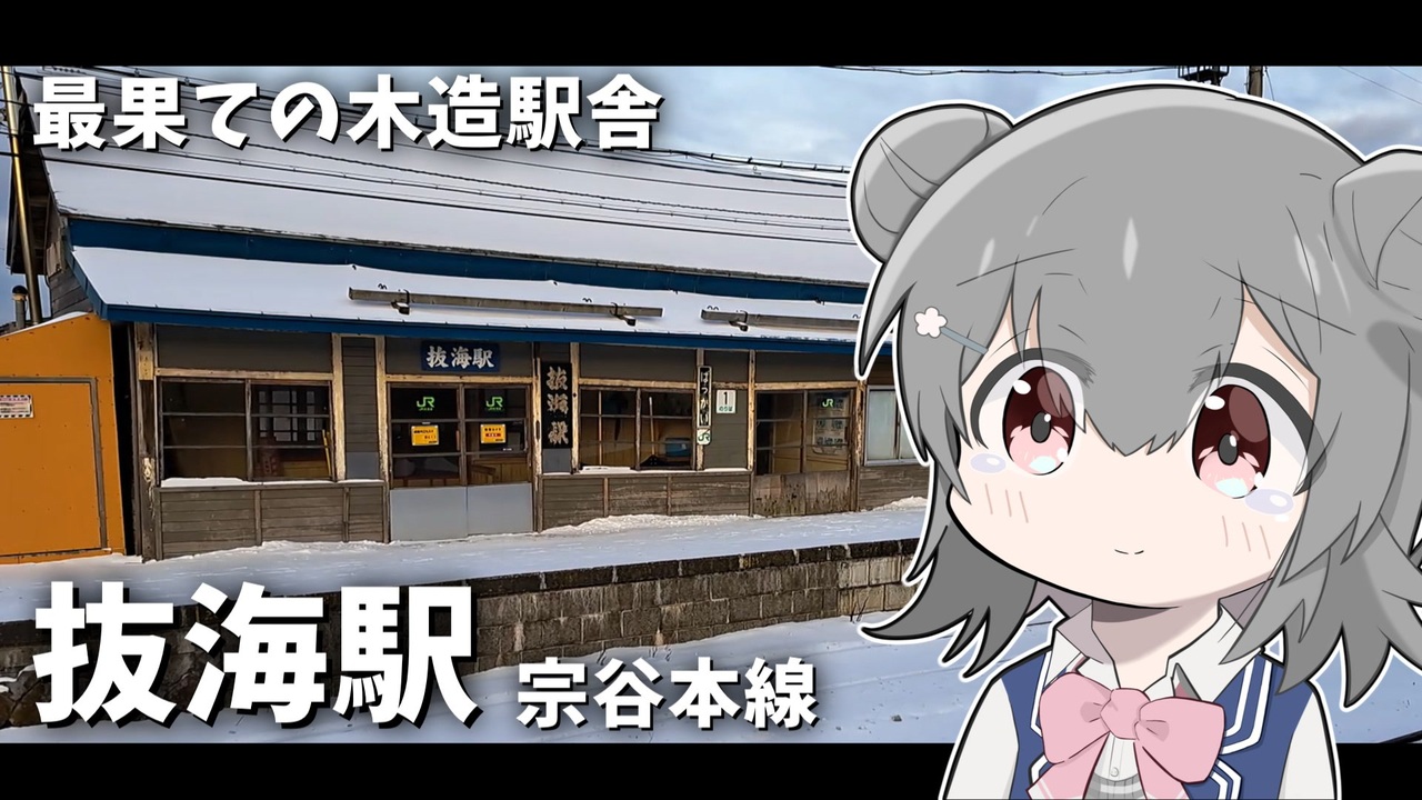 2024年度末に廃止されるのではないか?と言われるJR宗谷本線「抜海駅」を訪れました。<br>撮影は2023年12月16日です。<br><span style="color: #ff0000; font-size: 24px;">季節感こわるる。</span><br>前回投稿の別動画で2023年6月に稚内を訪れていますが、理由(目的)があって最近もう一度訪れたわけですね。<br>個人的にとてもよい動画が撮れたので、早く共有したくて先に編集してしまいました。<br>スタンプラリーを楽しみにしてくださっているみなさん、順番前後して申し訳ないです。よかったらこっちも楽しく見てね!<br><br /><br>よろしければ今までの投稿動画も見てください。 <br> 投稿動画一覧 <a href="https://www.nicovideo.jp/mylist/73587666" target="_blank" rel="noopener">mylist/73587666</a><br><br> ドライブ系(単発) <a href="https://www.nicovideo.jp/series/348689" target="_blank" rel="noopener">series/348689</a><br> 鉄道系 <a href="https://www.nicovideo.jp/series/481052" target="_blank" rel="noopener">series/481052</a><br> 道の駅スタンプラリー <a href="https://www.nicovideo.jp/series/346949" target="_blank" rel="noopener">series/346949</a><br> 動く立ち絵シリーズ <a href="https://www.nicovideo.jp/series/326086" target="_blank" rel="noopener">series/326086</a> <br>--------------------------------------<br>[今後の動画投稿予定]<br>次回:猿払村にホタテを食べに行くプチドライブ<br>以降候補:<br>・道の駅スタンプラリー 新作 1日目<br>・レンタカーで千里浜 後編<br>・紡乃世詞音ちゃんの単発動画<br><br>☆気になる動画がある方は見逃さないように是非フォローしてね!☆<br><br><a target="_blank" href="https://qa.nicovideo.jp/faq/show/19424?site_domain=default" style="font-size: 13px;color: #657586; text-decoration: underline; line-height: 1.4">この動画は投稿者によって修正されました</a>