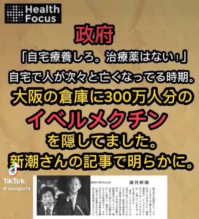 これ あつきさんのポストより引用<br><br>これ、もう〇人集団じゃん。<br>全員逮捕でよくない? <br><br><a href="https://t.co/KlukW68KAb" target="_blank" rel="noopener nofollow">https://t.co/KlukW68KAb</a><br><br><br><br>一時期イベルメクチンの流通が止まって品薄になった時期があったのを覚えている<br>メディア、工作員によるイベルメクチン叩き、ネガティブキャンペーン、世界的に流通が止められてたのかと思ってた…<br><br>とんだドグサレ者政腐だ( ´_ゝ`)<br><br>全員逮捕!<br><br><br><br>新型コロナウイルス<br>パンデミック<br>イベルメクチン<br>治療薬<br>自宅療養<br>大阪の倉庫<br>300万人分のイベルメクチン<br>治療薬を隠す政府<br>不都合な真実<br>殺人政府<br>週刊新潮<br>隠蔽<br><br>副作用がない<br>少量で効く<br>馬の駆虫薬<br>ネガティブキャンペーン<br>カモフラージュ<br>政府は知っていた<br>国民の健康<br>今だけ金だけ自分だけ<br>陰謀<br>犯罪<br>インフルエンザ<br>万能薬<br>ワクチン解毒<br>ワクチンデトックス<br>全員逮捕<br>帰化人<br>帰化人政治家<br>売国政府<br>増税<br>世界トップクラスの議員報酬<br>裏金<br>汚職<br>献金<br>天下り<br>製薬会社<br>医療業界<br>医師会<br>パーティー券<br>政治資金パーティー<br>癒着<br>自民党<br>ワクチン工場誘致<br>公明党<br>10年間の購入計画<br>ワクチン薬害<br>ワクチン利権一神教<br>ワクチン利権<br>国民の健康、命より金<br><br><br><br><br><br />著作権、肖像権に配慮して作成しております。<br><br>◆気になったニュースの台本!?<br>メモ代わりに作った台本をそのままあげてます<br><a href="https://keiichiro8140.hatenablog.com/." target="_blank" rel="noopener nofollow">https://keiichiro8140.hatenablog.com/.</a><br><br><br>ここからはシリーズ紹介<br><br><br>◆ ワクチン解毒・デトックス<br><a href="https://x.gd/fZweg" target="_blank" rel="noopener nofollow">https://x.gd/fZweg</a><br><br>◆ウイリアム・マキス博士のがん治療(イベルメクチン・フェンベンダゾール等)<br><a href="https://x.gd/AtFYS" target="_blank" rel="noopener nofollow">https://x.gd/AtFYS</a><br><br>◆予防接種健康被害救済制度<br><a href="https://x.gd/0xK9x" target="_blank" rel="noopener nofollow">https://x.gd/0xK9x</a><br><br>◆気になったニュース #1501~<br><br>◆ 【ショートver】気になったニュース<br><a href="https://x.gd/7MxXC" target="_blank" rel="noopener nofollow">https://x.gd/7MxXC</a><br><br>◆ 気になったニュース #1001~<br><a href="https://x.gd/Lp8gv" target="_blank" rel="noopener nofollow">https://x.gd/Lp8gv</a><br><br>◆ 気になったニュース #501~<br><a href="https://x.gd/EmbS4" target="_blank" rel="noopener nofollow">https://x.gd/EmbS4</a><br><br>◆ 気になったニュース #1~#500<br><a href="https://x.gd/uPhNb" target="_blank" rel="noopener nofollow">https://x.gd/uPhNb</a><br><br>◆ X(旧Twitter)・テレグラムで気になった情報<br><a href="https://x.gd/YG6FT" target="_blank" rel="noopener nofollow">https://x.gd/YG6FT</a><br><br>◆ 日比谷5万人パレードデ⚪生放送アーカイブ動画<br><a href="https://x.gd/3CHJv" target="_blank" rel="noopener nofollow">https://x.gd/3CHJv</a><br><br>◆日比谷5万人パレード⚪モのマイリスト作ってみました<br><a href="https://nico.ms/mylist/76828848?ref=sp_other" target="_blank" rel="noopener nofollow">https://nico.ms/mylist/76828848?ref=sp_other</a><br><br>◆3.30 令和の百姓⚪⚪<br><a href="https://www.nicovideo.jp/series/511791?ref=garage_share_other" target="_blank" rel="noopener nofollow">https://www.nicovideo.jp/series/511791?ref=garage_share_other</a><br><br>◆ 及川幸久さんの【XNEWS】シリーズ<br><a href="https://x.gd/3k78K" target="_blank" rel="noopener nofollow">https://x.gd/3k78K</a><br><br>◆これまでの動画<a href="https://x.gd/sPXoJ" target="_blank" rel="noopener nofollow">https://x.gd/sPXoJ</a><br><br>◆もしも(BAN)の時のためのマイリンク集<a href="https://lit.link/K-16_News44" target="_blank" rel="noopener nofollow">https://lit.link/K-16_News44</a><br><br>